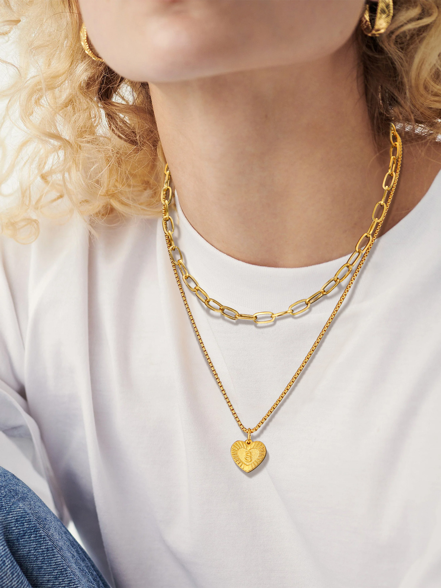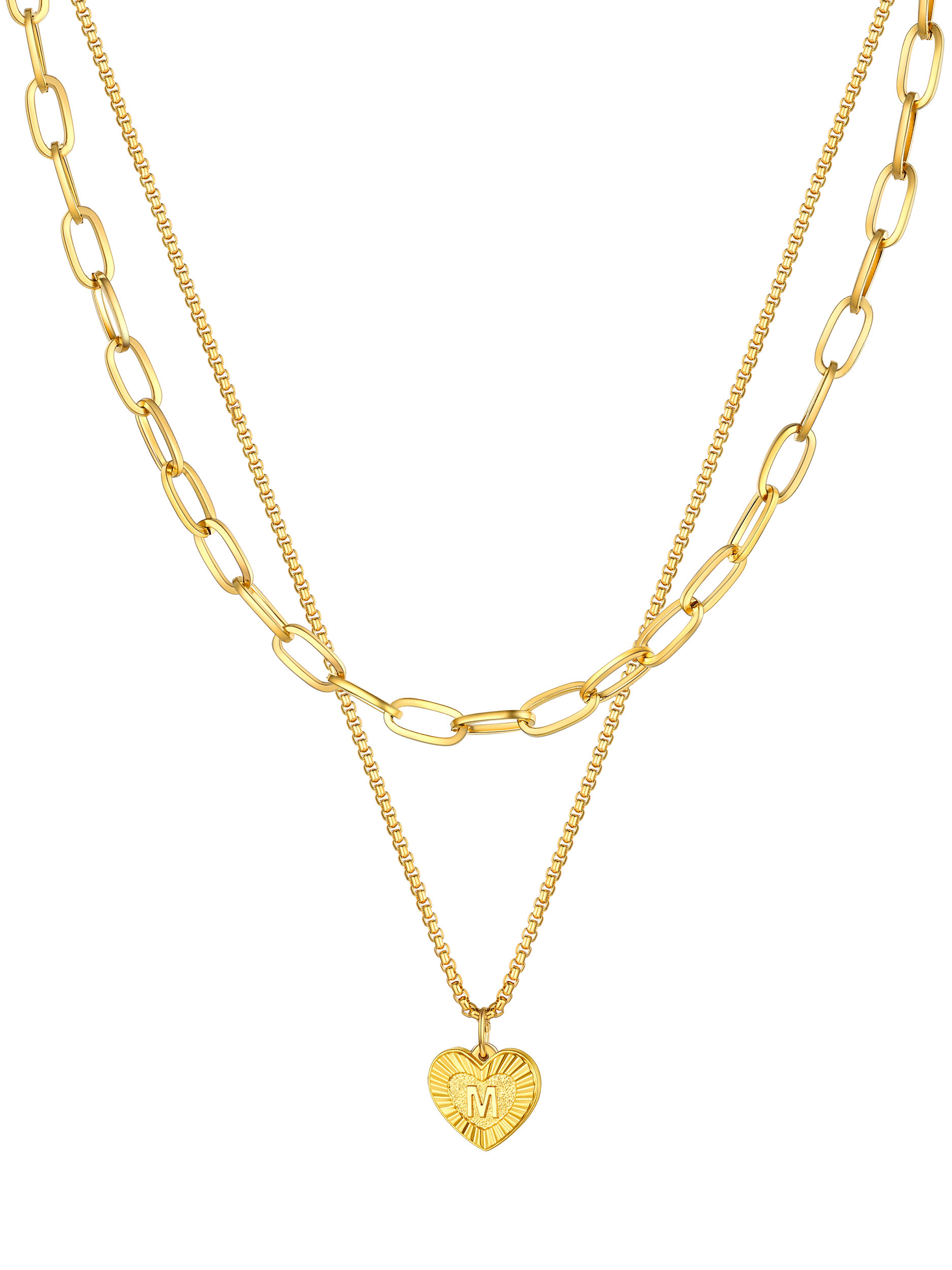 PROSTEEL Layered Initial Heart Necklaces for Women 2Pcs Dainty Paperclip Chain Choker Necklaces Women Jewelry Letter A-Z