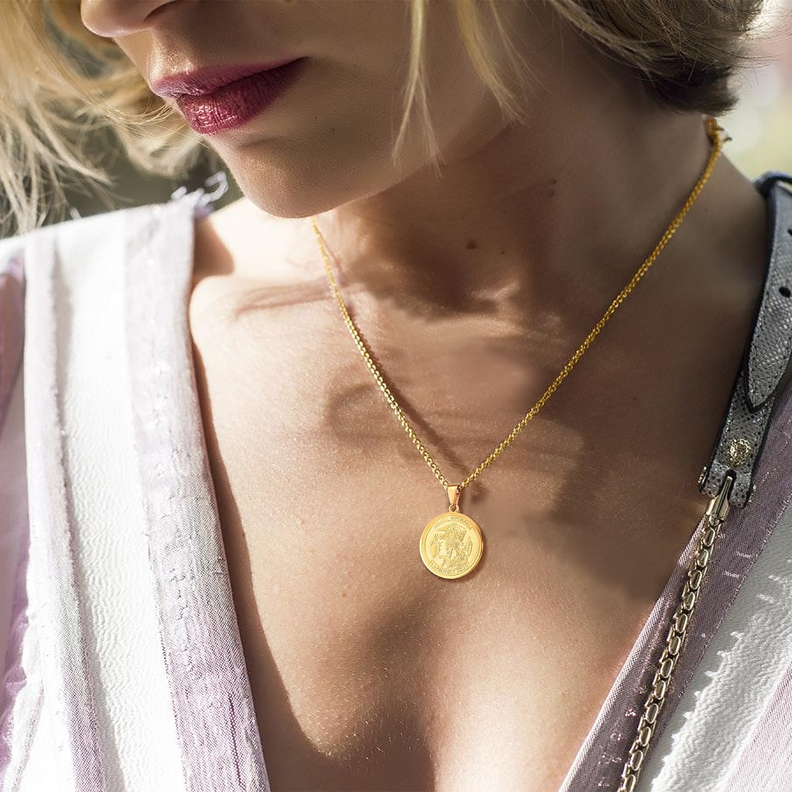 PROSTEEL Round St. Michael The Archangel Medallion Pendant Necklace Stainless Steel Spiritual Gifts