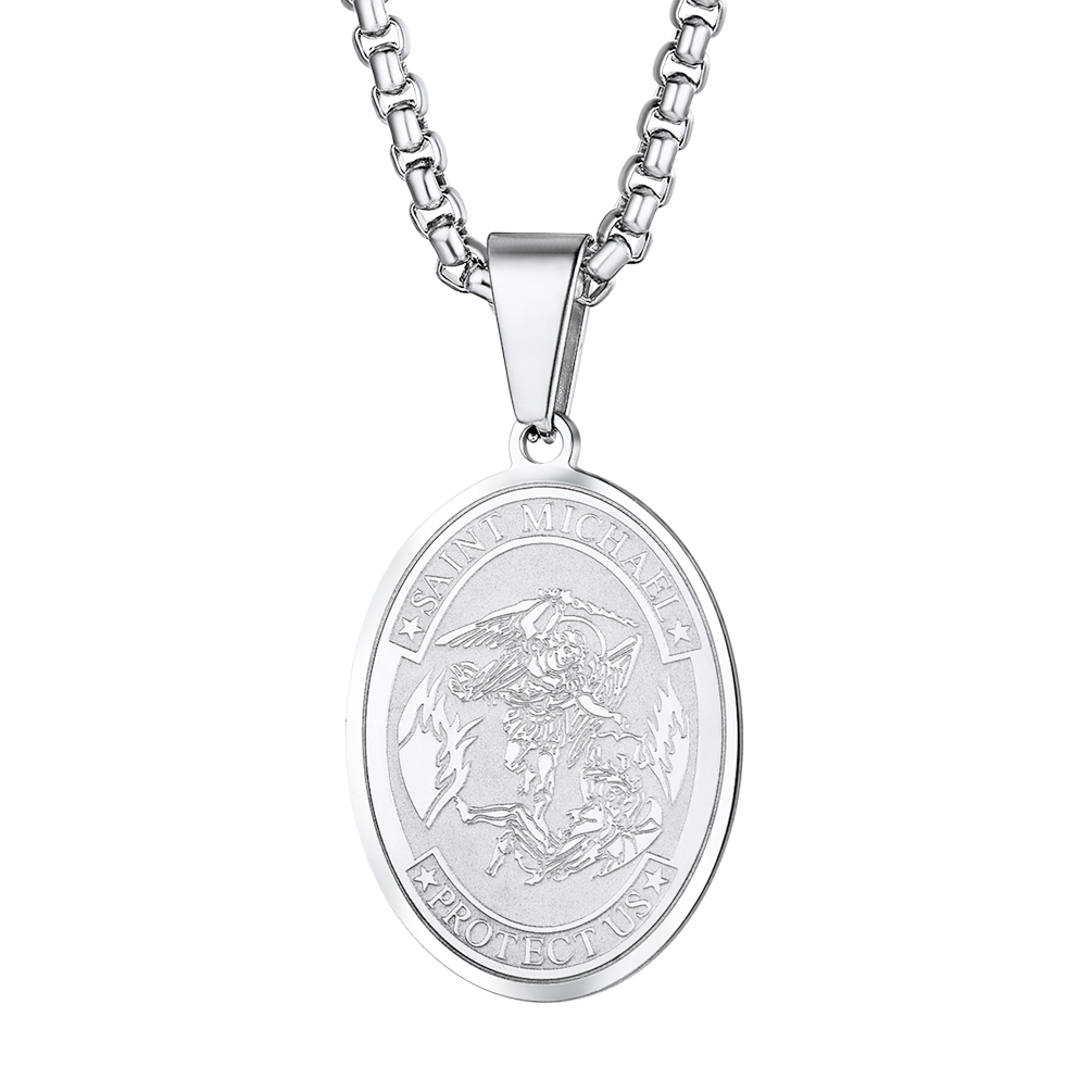 PROSTEEL St Michael The Archangel Oval Pendant Necklace Catholic Stainless Steel Religious Men Jewelry,Silver/Black/Gold