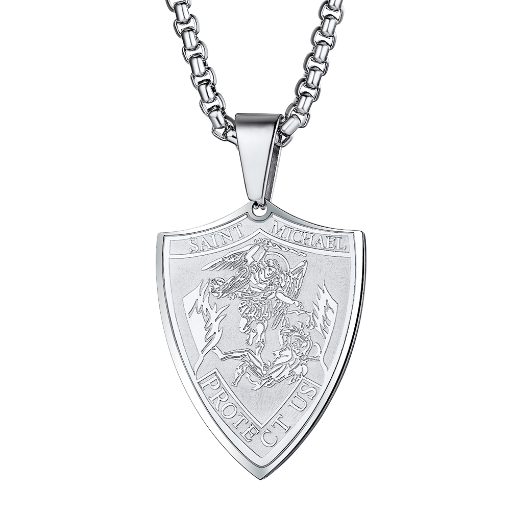 PROSTEEL Amulet Catholic St. Michael The Archangel Shield Necklaces Stainless Steel Medals Men Boy Pendants,Silver/Black/Gold