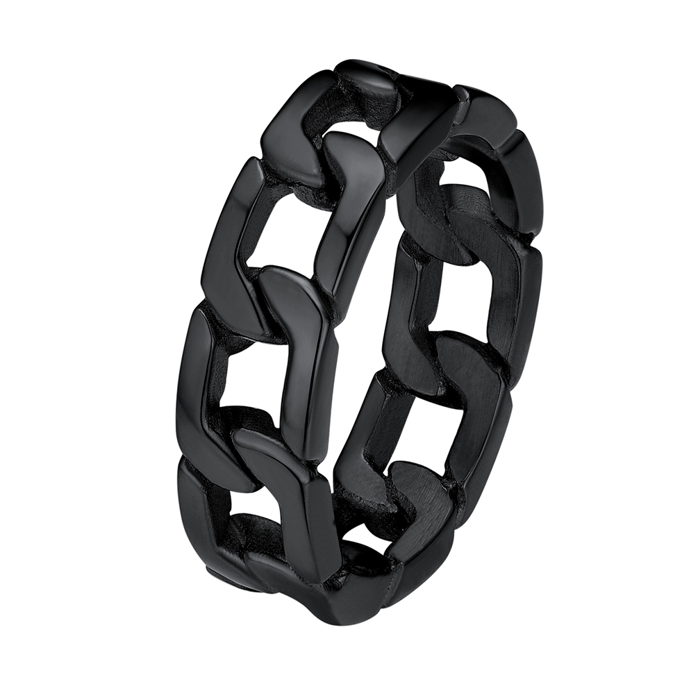 PROSTEEL Size 7-12 Simple Stainless Steel/Black Plated Cuban Band Ring for Men Boy