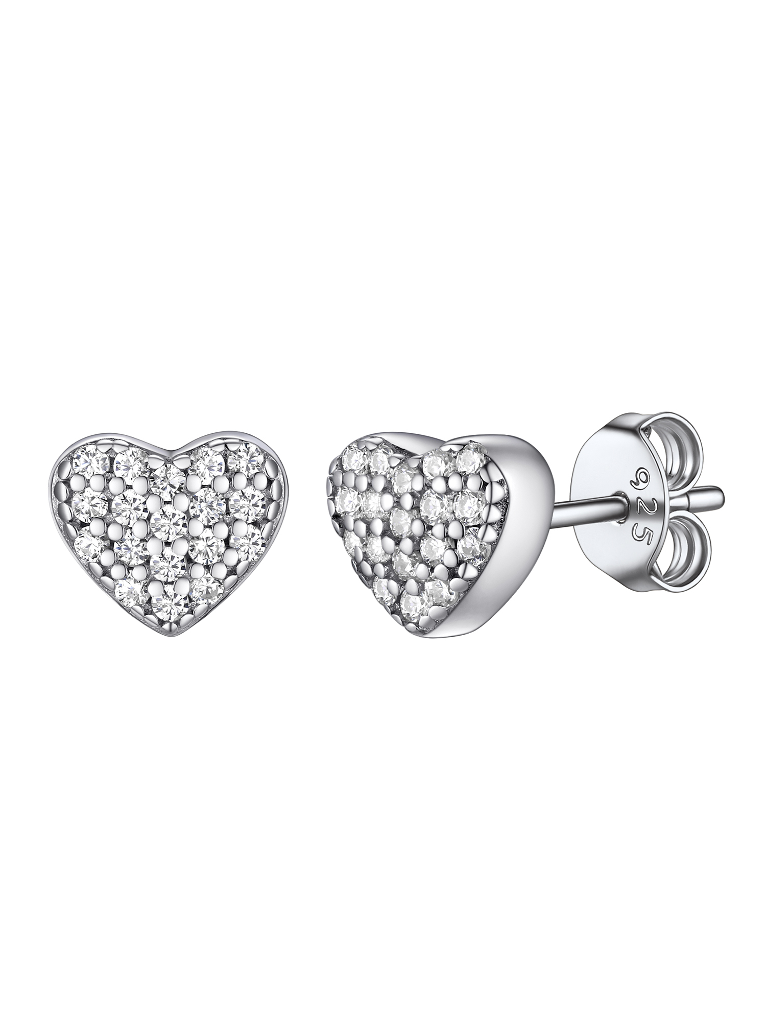PROSTEEL Heart Stud Earrings for Women Sparkly Cubic Zirconia 925 Sterling Silver Heart Stud Earrings for Girls Stunning Birthday Valentine Gift