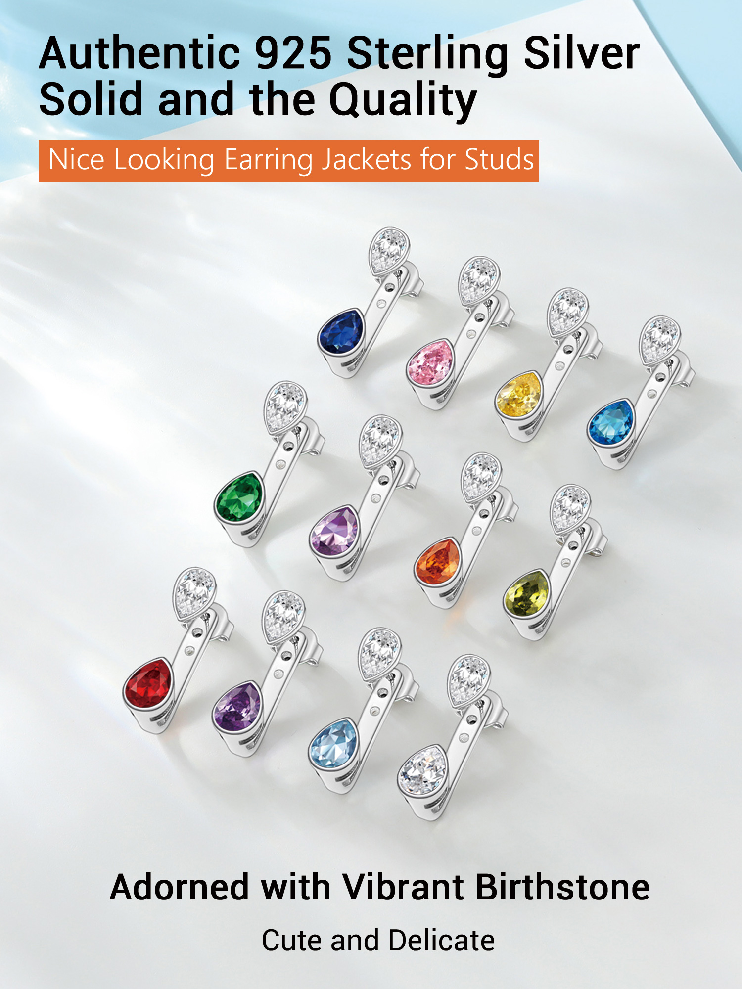 PROSTEEL Double Pear Shape Sterling Silver Ear Jacket Earrings Front Back CZ Birthstone January Garnet Earrings for Women Girls Birthday Gift