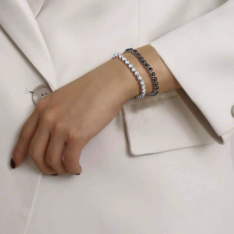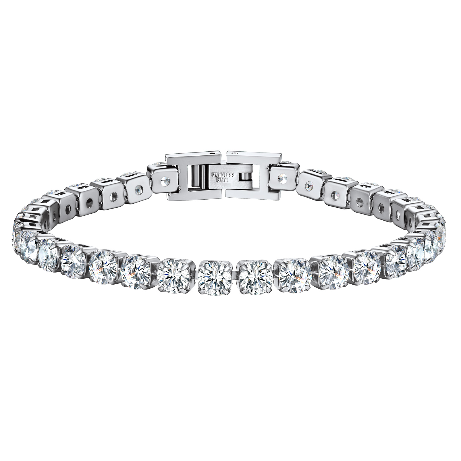 PROSTEEL Cubic Zirconia Classic Tennis Bracelet for Women Birthday Christmas Gift Stainless Steel Silver/Black 3mm/5mm Chain Bracelets 6.8/7.5 inches