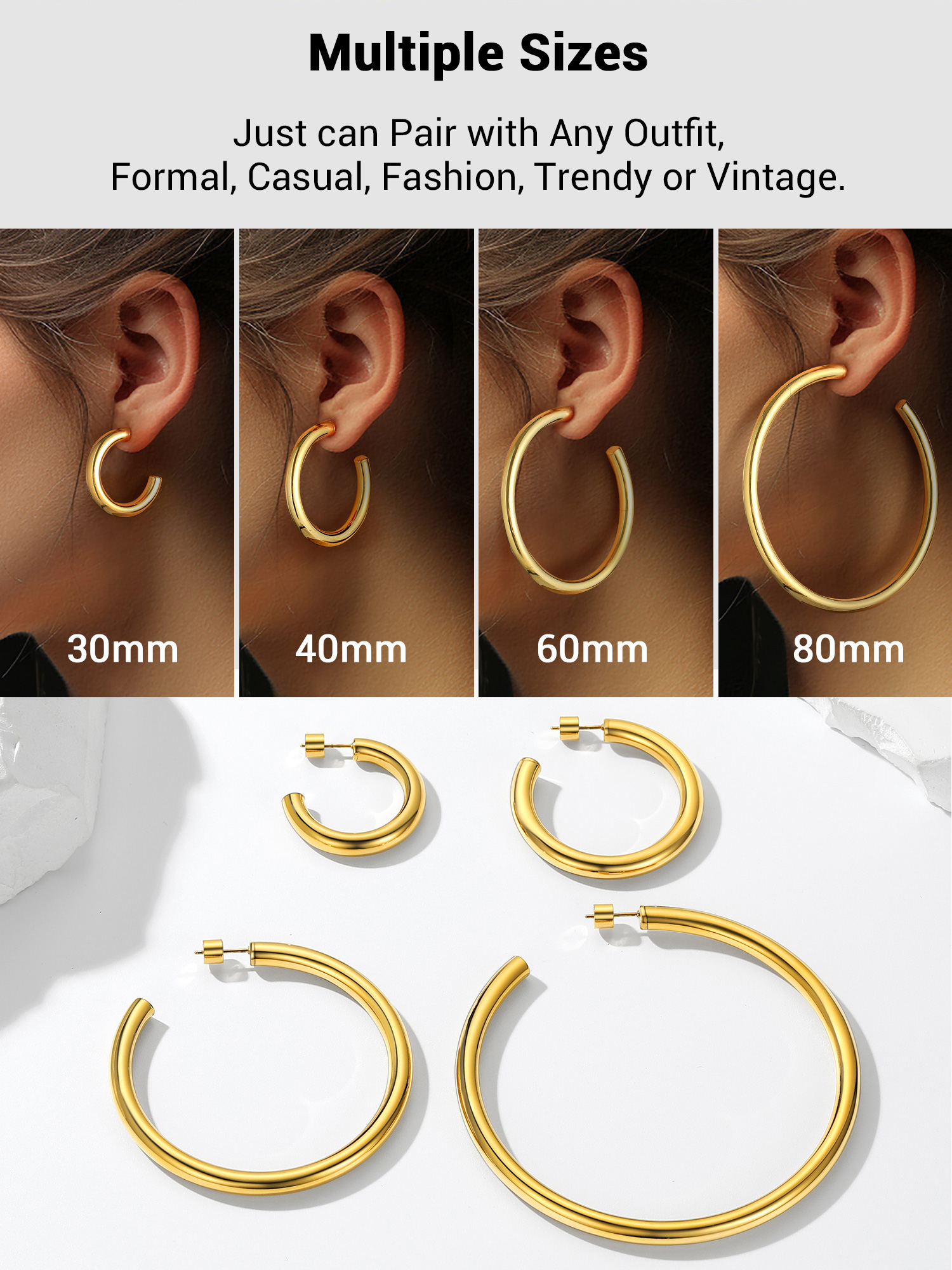 PROSTEEL Round Hoop Earring for Women Girls Open Hoops Stainless Steel Party Earrings Jewelry Birthday Gift for Mom Daughter(30mm/40mm/60mm/80mm)