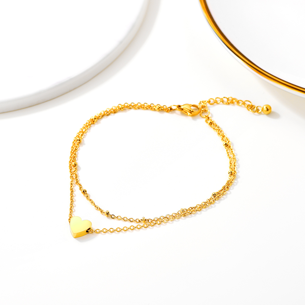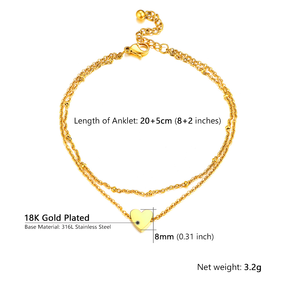 PROSTEE Heart Ankle Bracelets for Women Teen Girls Double Layered Stainless Steel Bead Chain Anklets Summer Foot Jewelry Gifts