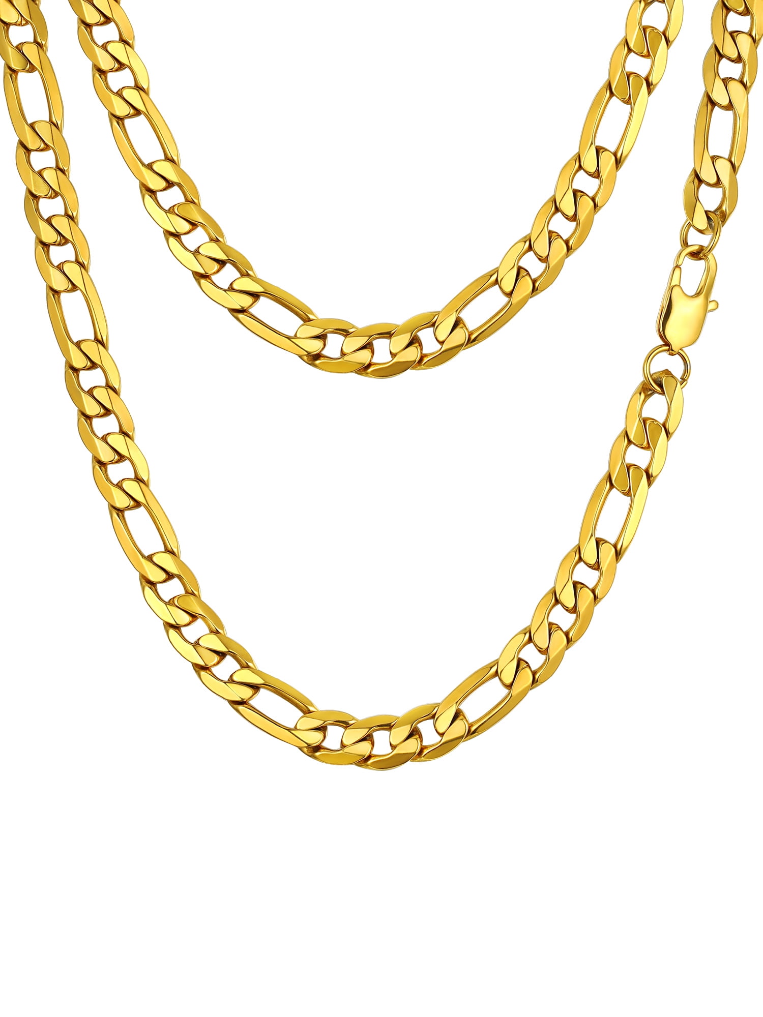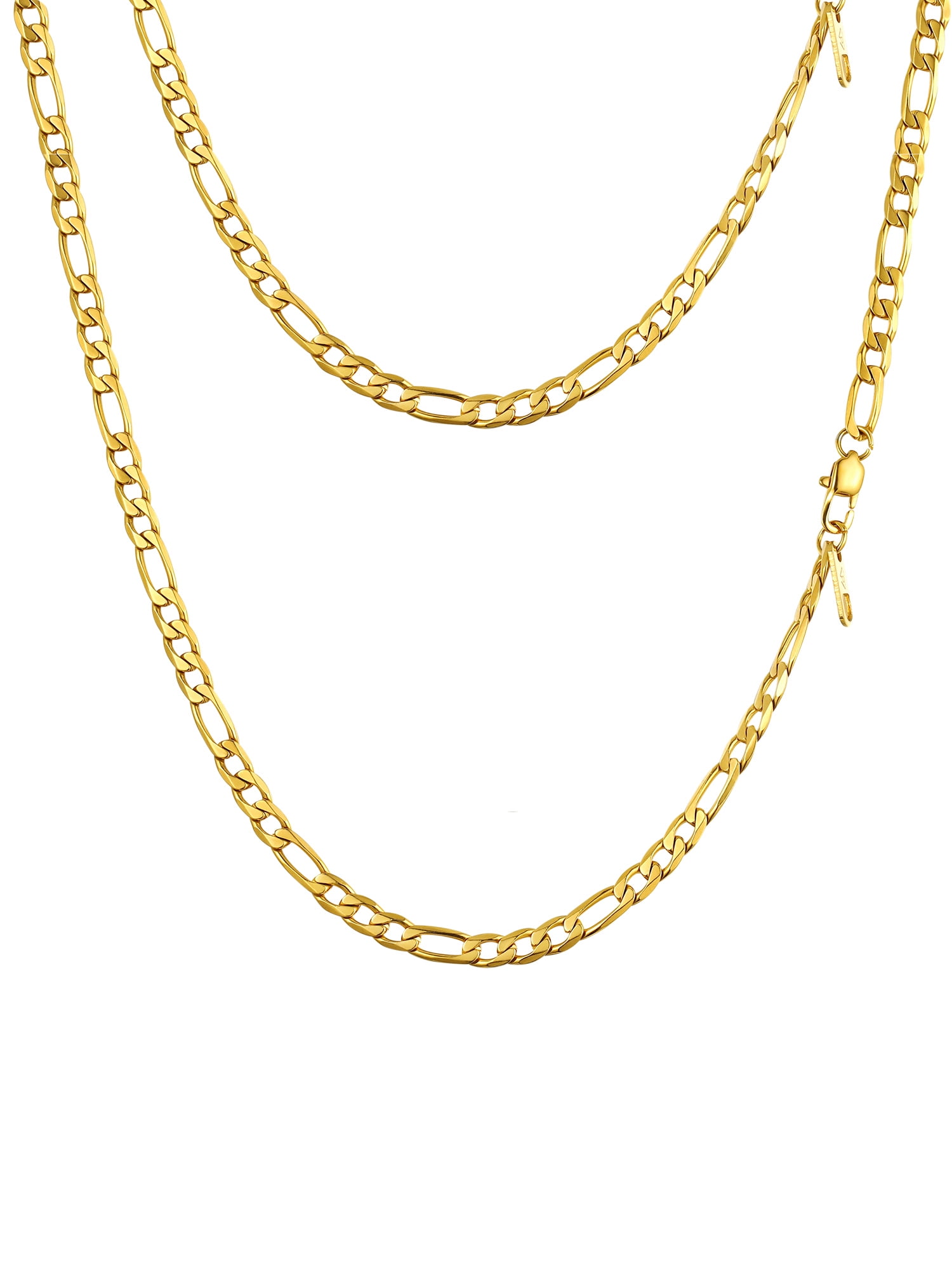 Figaro Chain Necklace - These chains are crafted to be lightweight for easy all-day wear. They are plated in 14K yellow gold plating for a long-lasting brilliant finish that is hypoallergenic, lead-free, and nickel-free. The style of stainless steel features strong, durable and thick yet price afforable, it is suitable for budget friendly people.