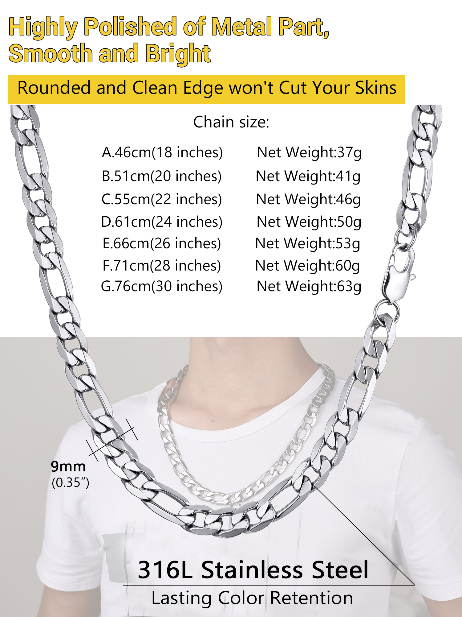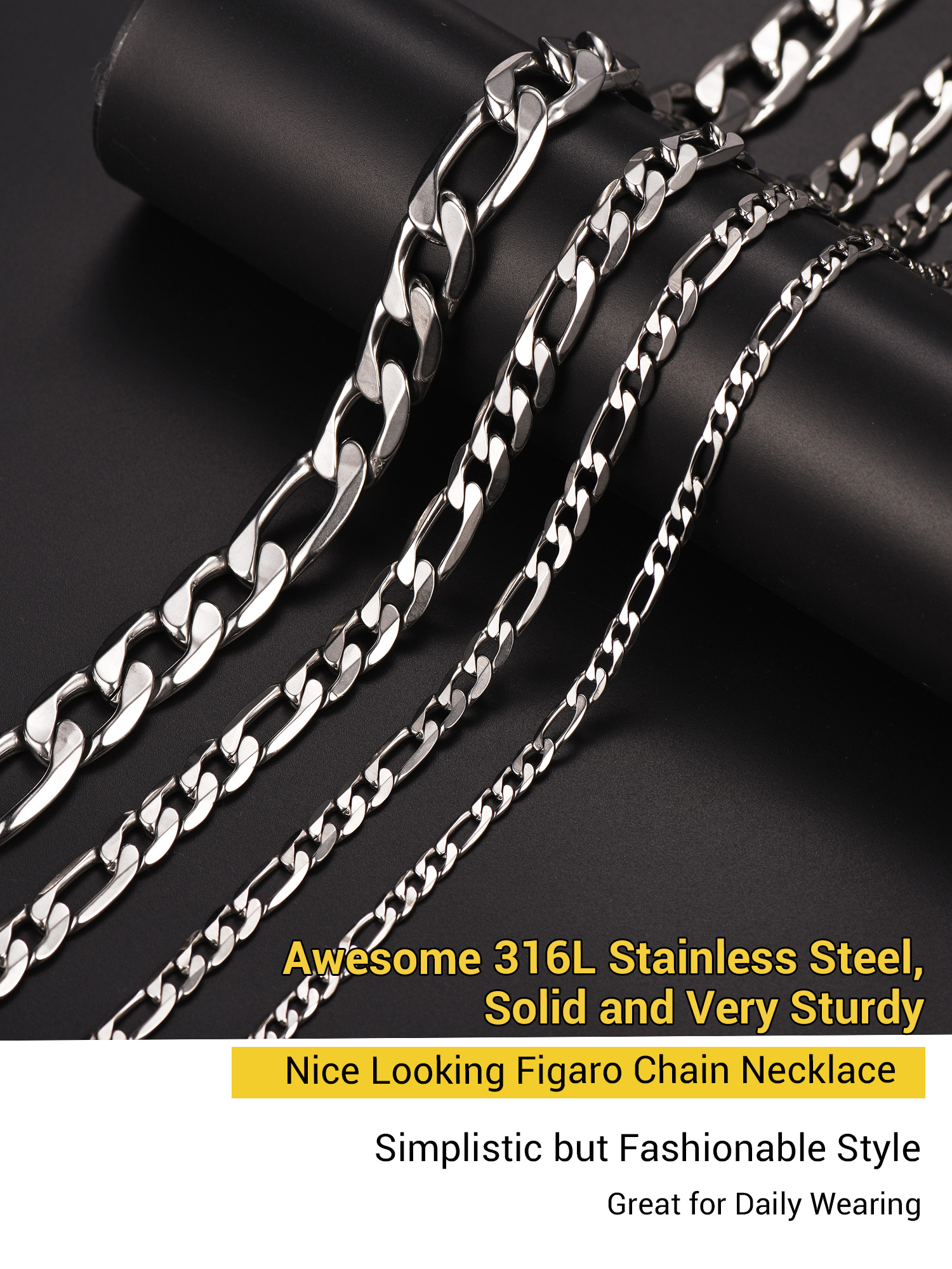 PROSTEEL Stainless Steel Chain for Men Women - Add style to a basic look with this solid and versatile 6mm Figaro chain. The flat polished chain is diamond-cut to give the beveled links a reflective finish and a rich, perfect shine. Wear alone with casual or formal attire for everyday modern elegance, with your favorite pendant or charm for a personal statement or as a great layering chain.