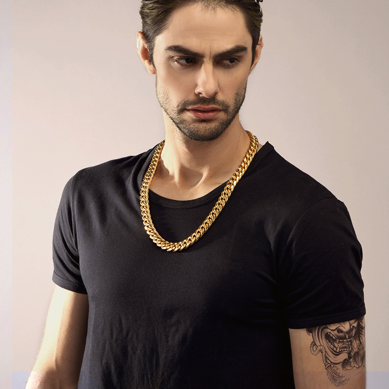 PROSTEEL 4.8/6/10/14mm Wide Mens Stainless Steel Gold/Silver/Black Chain Cuban Curb Necklace 14"-24"