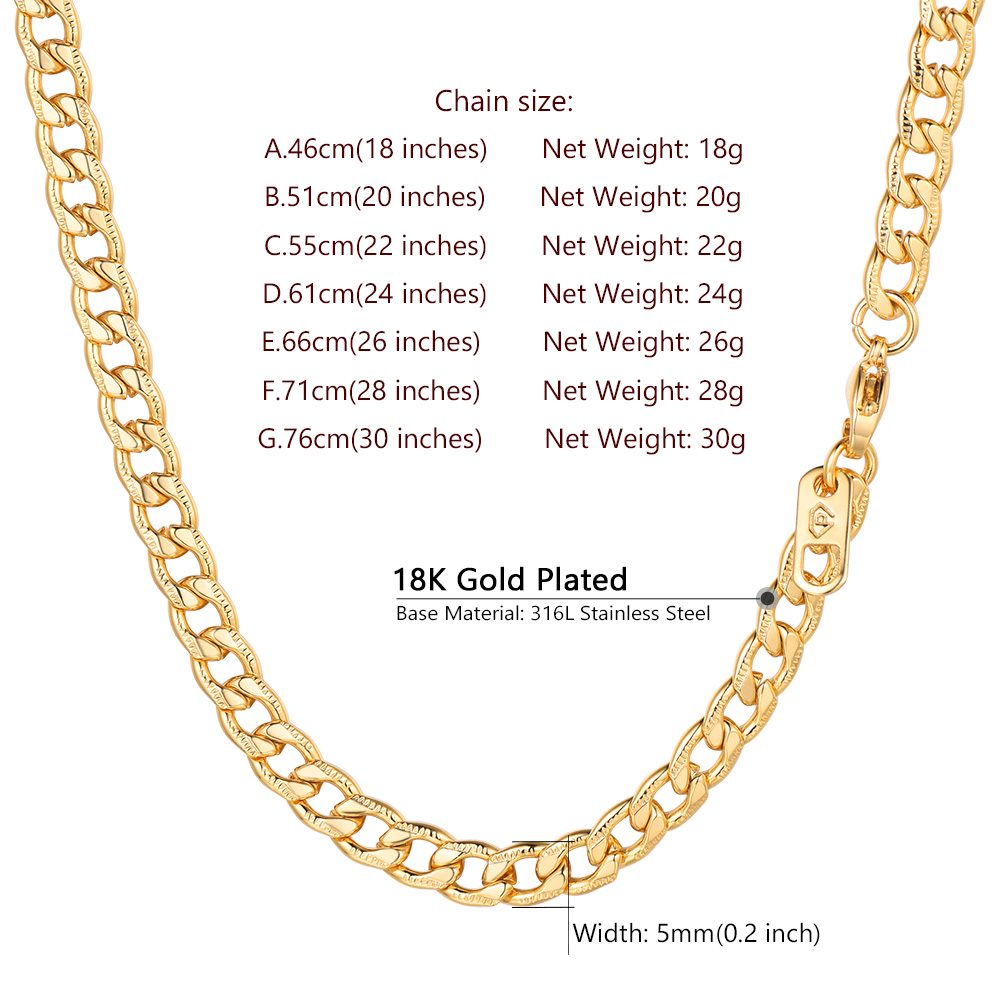 5mm Wide Sturdy Miami Cuban Chain: Minimalist and Stylish Curb Cuban Chain is a perfect women/men fashion accessories. It can be worn on any ccasion, every day. It is also easy to combine with other jewelry and clothing. Wear it Alone, Pair it with Your Big Pendant, Also Layers Well with Your other Flashier Jewelry. Not only chain necklaces are trendy, but they are also timeless and effortless to wear.