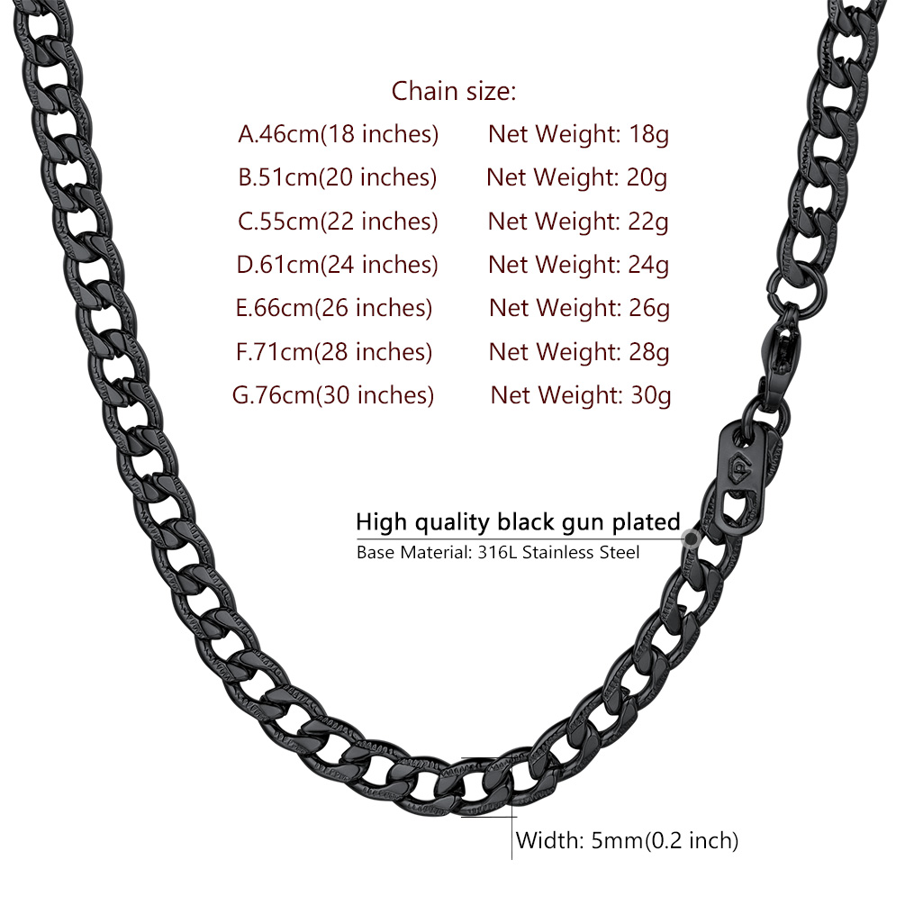 Classic Choker Necklace for unisex: For this Sturdy Miami Cuban Chain, 5mm/9mm/13mm different Width shows different style. We provide more chain lengths for you to select: 18/20/22/24/26/28/30 inch are both available. Just choose the your suitable and perfect chain length according to our size chart.