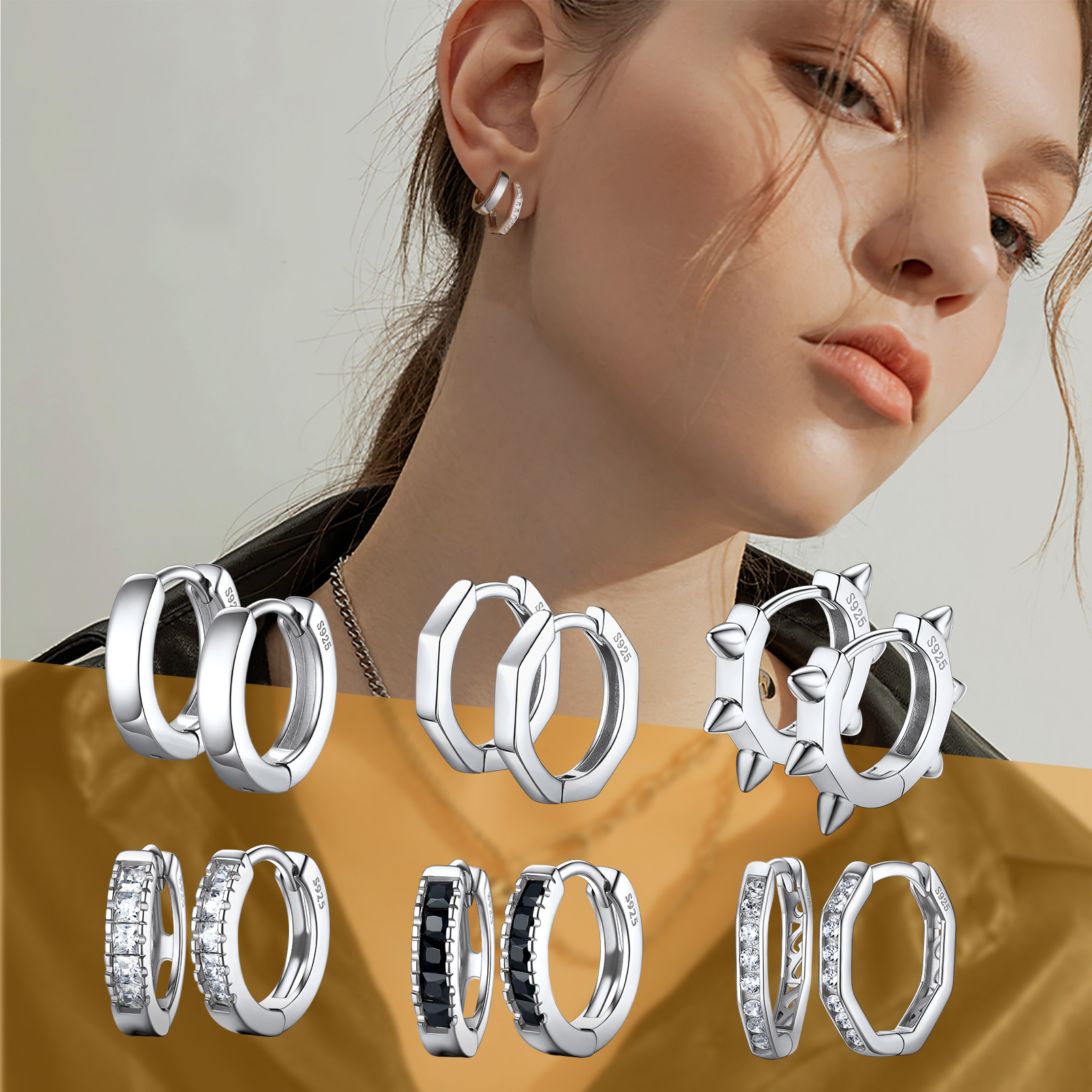 Authentic 925 Sterling Silver Material- The entire hoop earrings are made of genuine 925 sterling silver and black cubic zirconia, nickel free, lead free, cadmium free, hypoallergenic and comfortable to wear.
