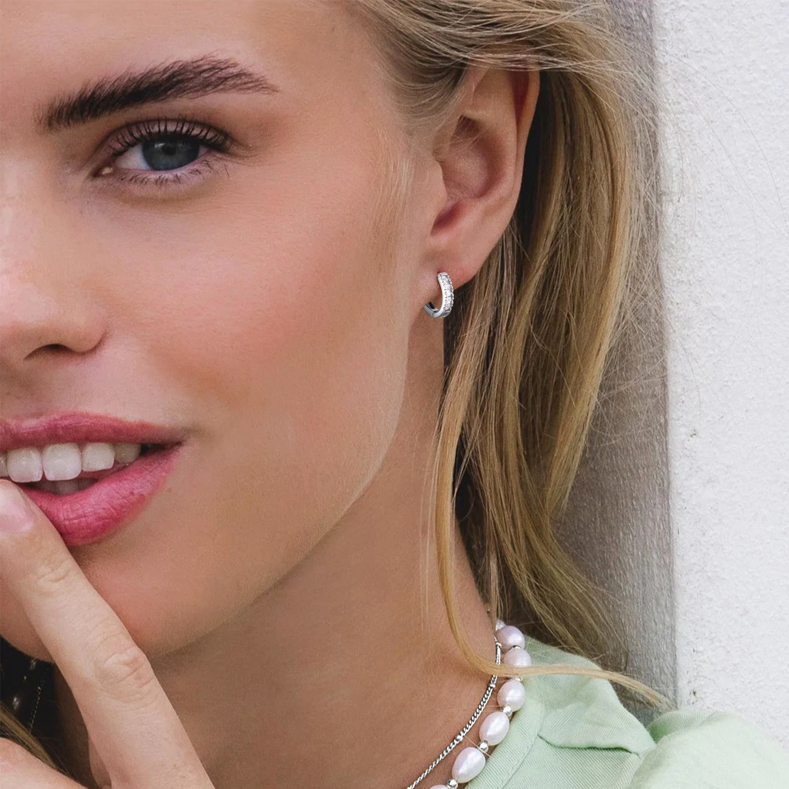 Silver Hoop Earring for Women- If you want a set of hoops you never have to take out, the stunning cubic zirconia hoop earrings are for you! These dainty hoop earrings add a beautiful sparkle to any look, suit for wearing daily occasion!