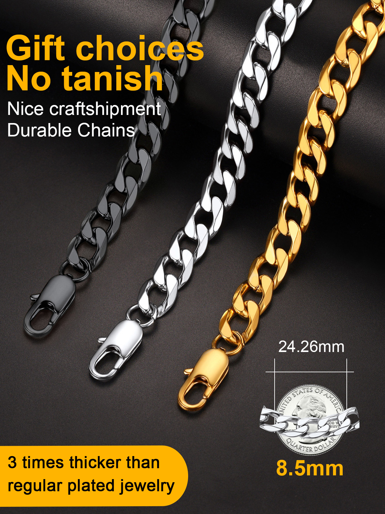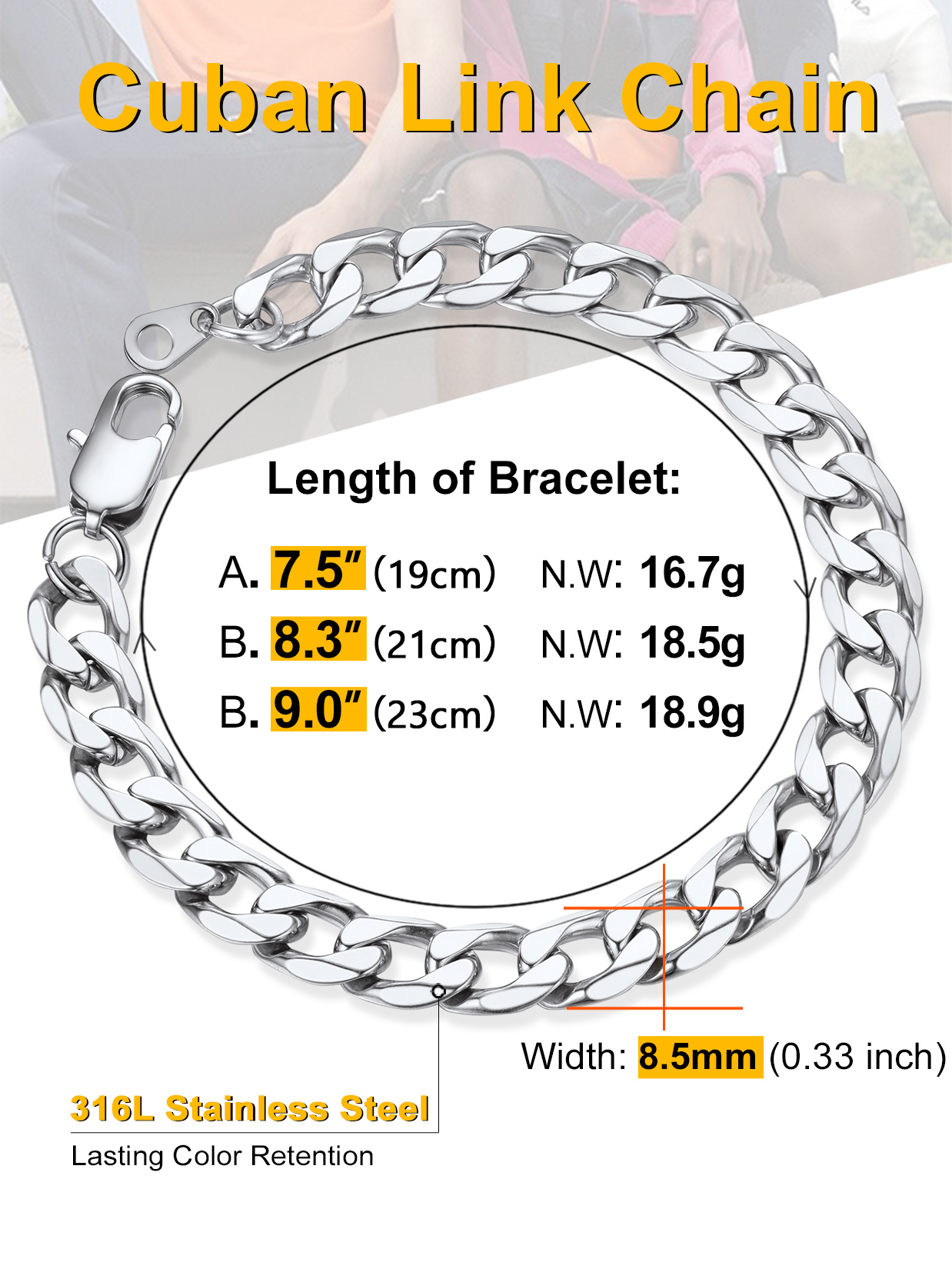 Introducing our exclusive handcrafted cuban chain bracelet, meticulously designed for style and durability. Each bracelet is made from 316L stainless steel, ensuring high quality and longevity. With hypoallergenic properties, these bracelets are gentle on the skin and suitable for those with sensitive skin. Available in lengths of 7.5 inches, 8.3 inches, and 9 inches, there is a size to fit every wrist comfortably. Elevate your style with this exquisite bracelets, a blend of sophistication and craftsmanship that will stand the test of time. Perfectly designed for the modern men, the Cuban Bracelet seamlessly transitions from casual to formal attire, making it an essential accessory for every occasion. Whether worn alone or stacked with other pieces, this bracelet is a statement of fashion and luxury.