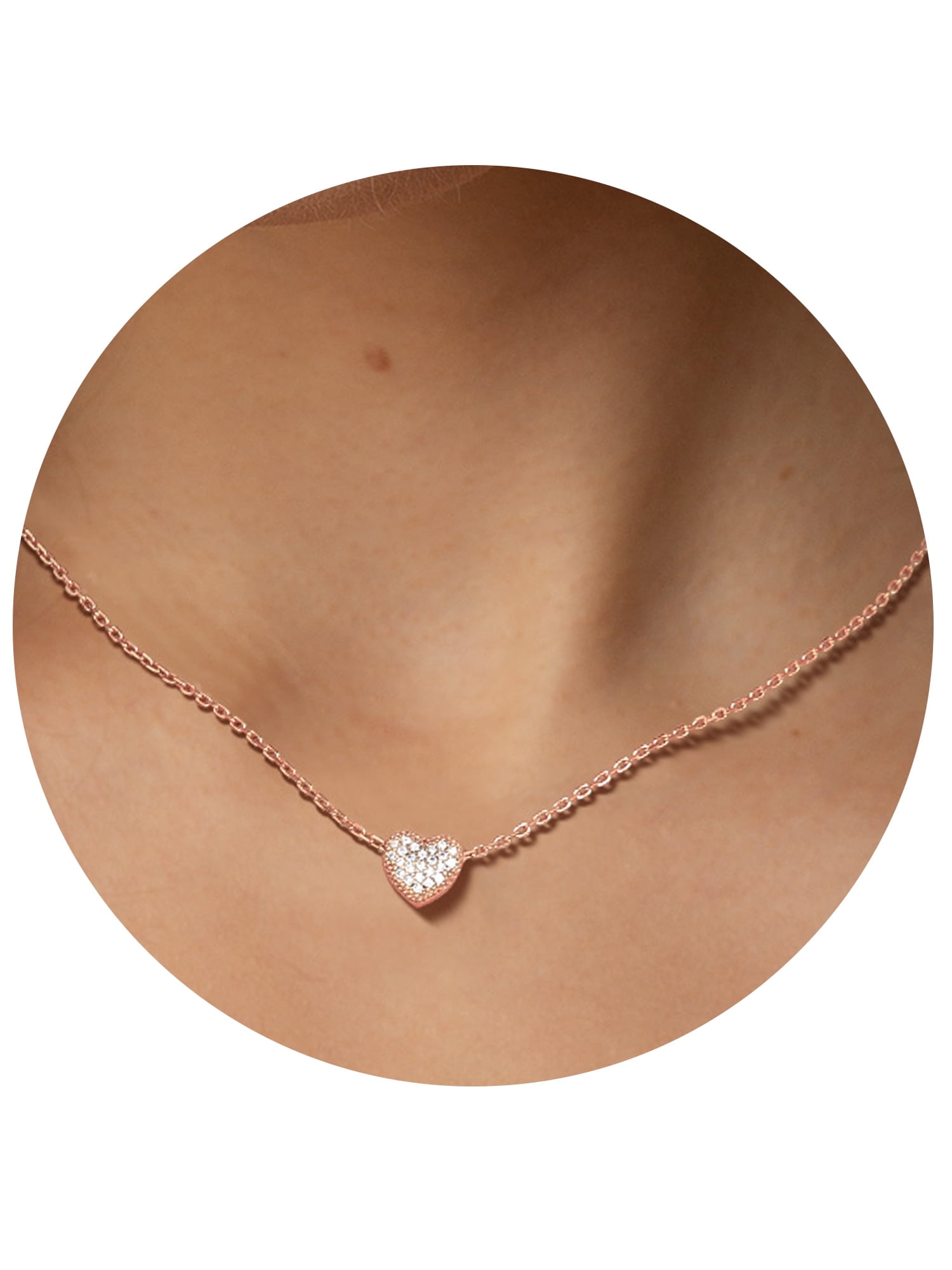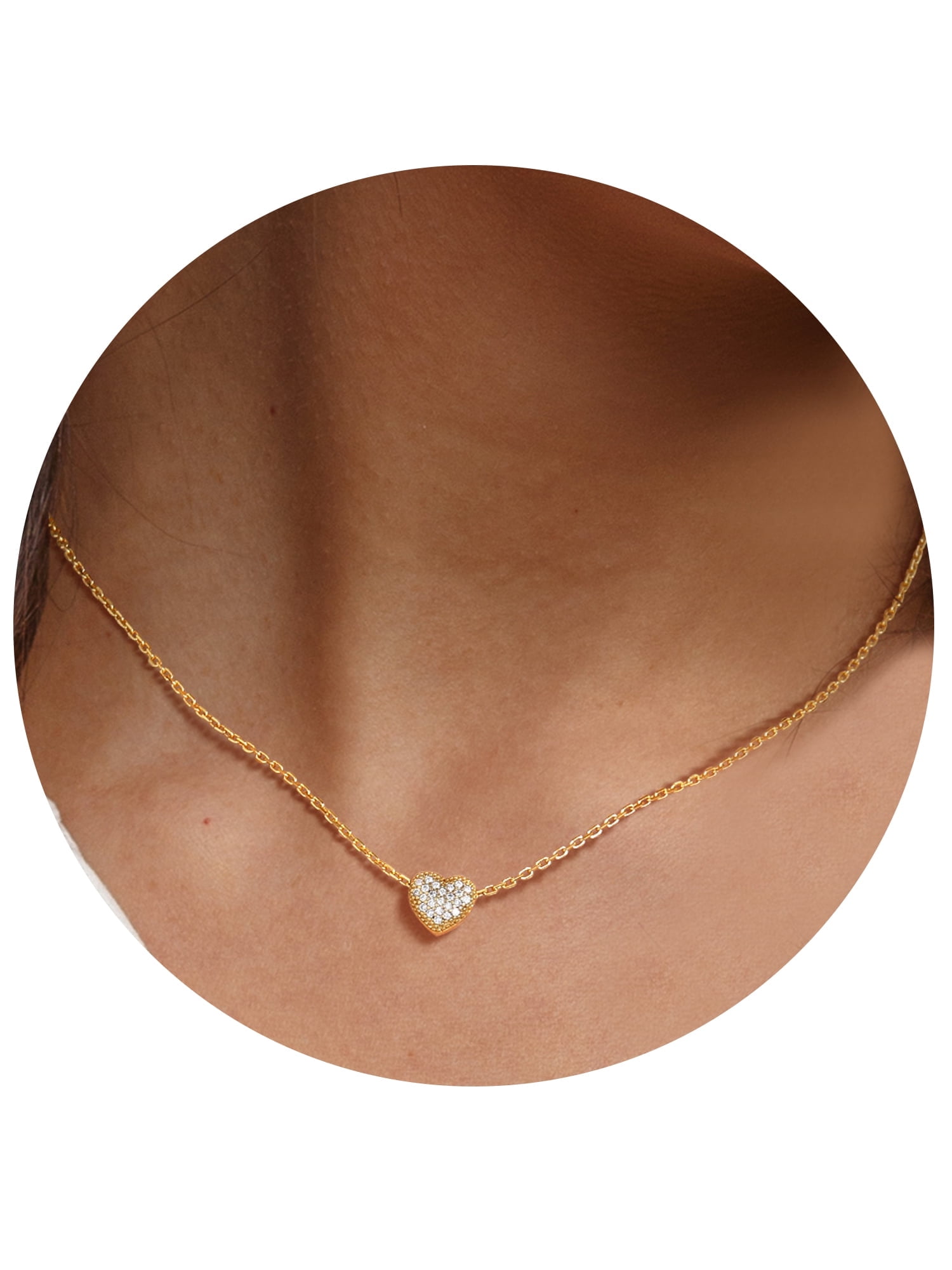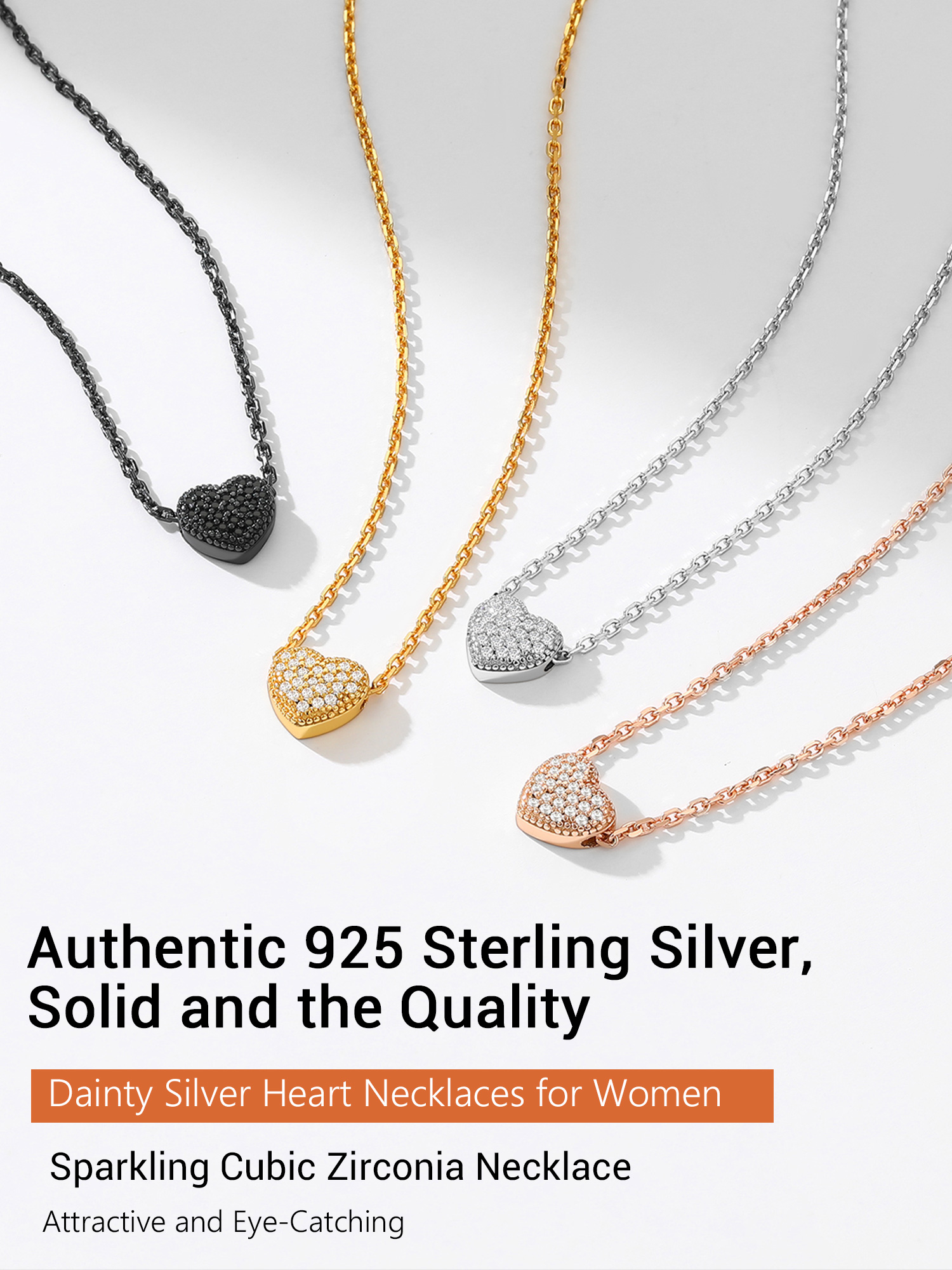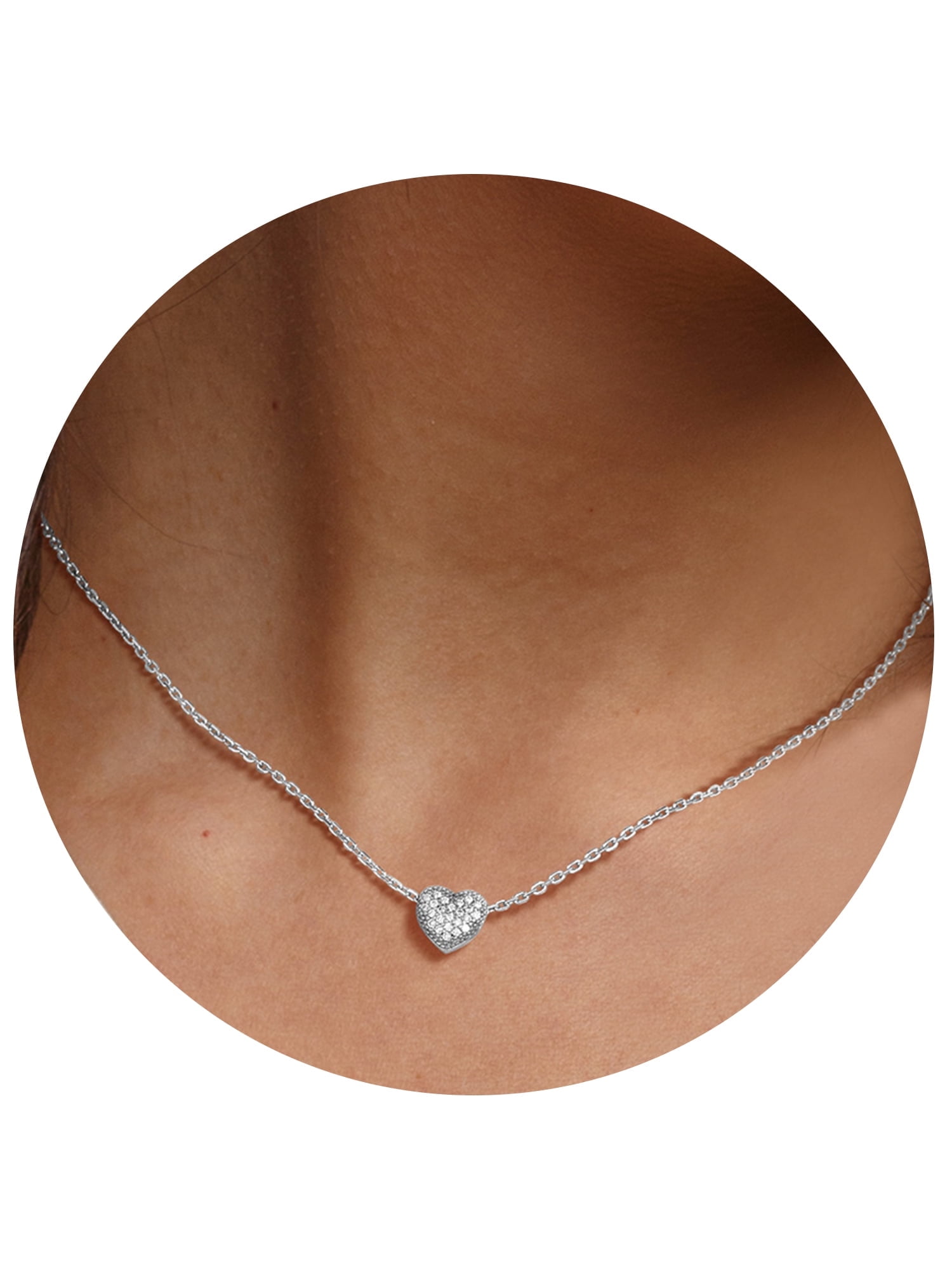 Dainty Silver Heart Necklaces - This cute heart pendant necklace looks very elegant with sweet and special design, beautiful for everyday wear or special occasion. beautiful AAA+ cubic zirconia, it really shines like real diamond.