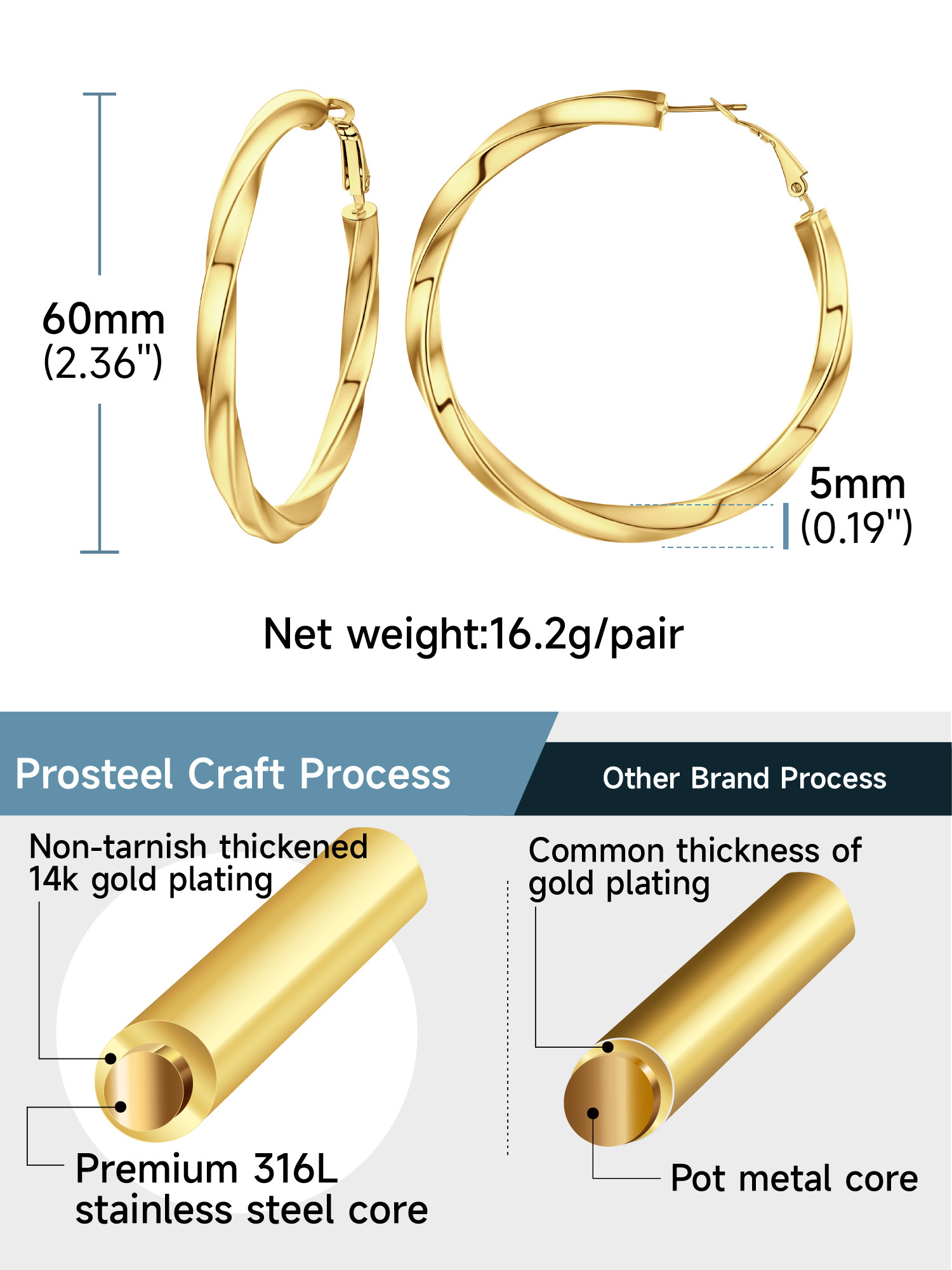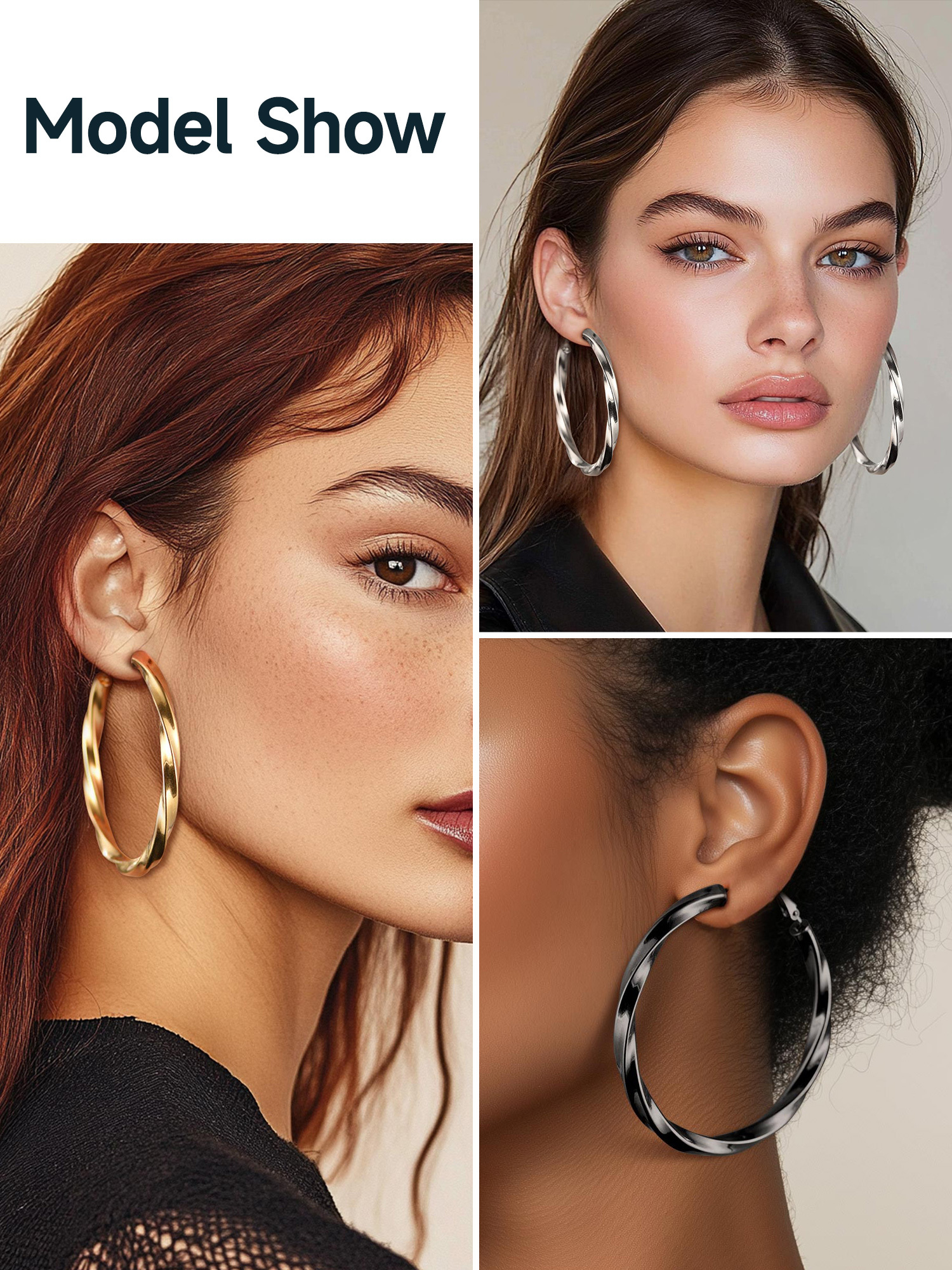 Keywords: Stainless Steel Hoop Earrings, Silver Hoop Earrings for Women, Gold Hoop Earrings for Women, Black Hoop Earrings for Women, Twisted Hoop Earrings, Classic Simple Earrings, Lightweight Hoop Earrings, Hypoallergenic Earrings for Female, Mother's Day Gifts for Wife, Mother's Day Gifts for Mom, Best Gifts for Daughter, Best Gifts for Grandaughter, Birthday Gift, Anniversary gift, Christmas Gift, Wedding gift, Engagement Gift