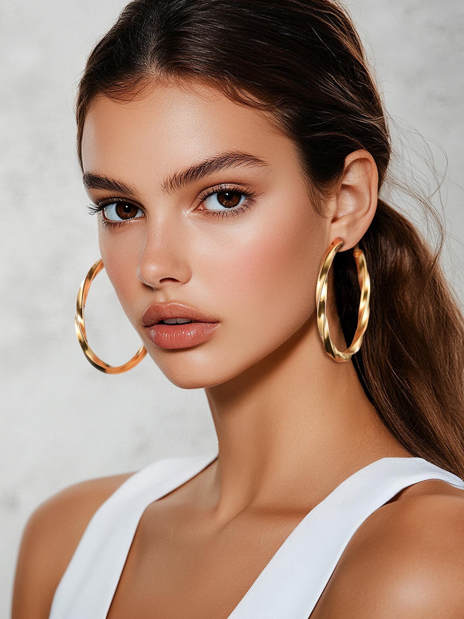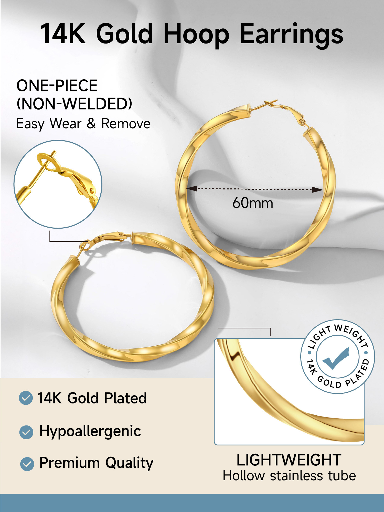 Twisted Hoop Earrings for Women - Large hoop earrings design is stylish and modern yet classic and elegant style. Twisted design fitting different face shapes, like oval face, round face, heart-shaped face and long face. These earrings are elegant and simple, making yourself or mother, wife perfect for both casual and formal occasions.