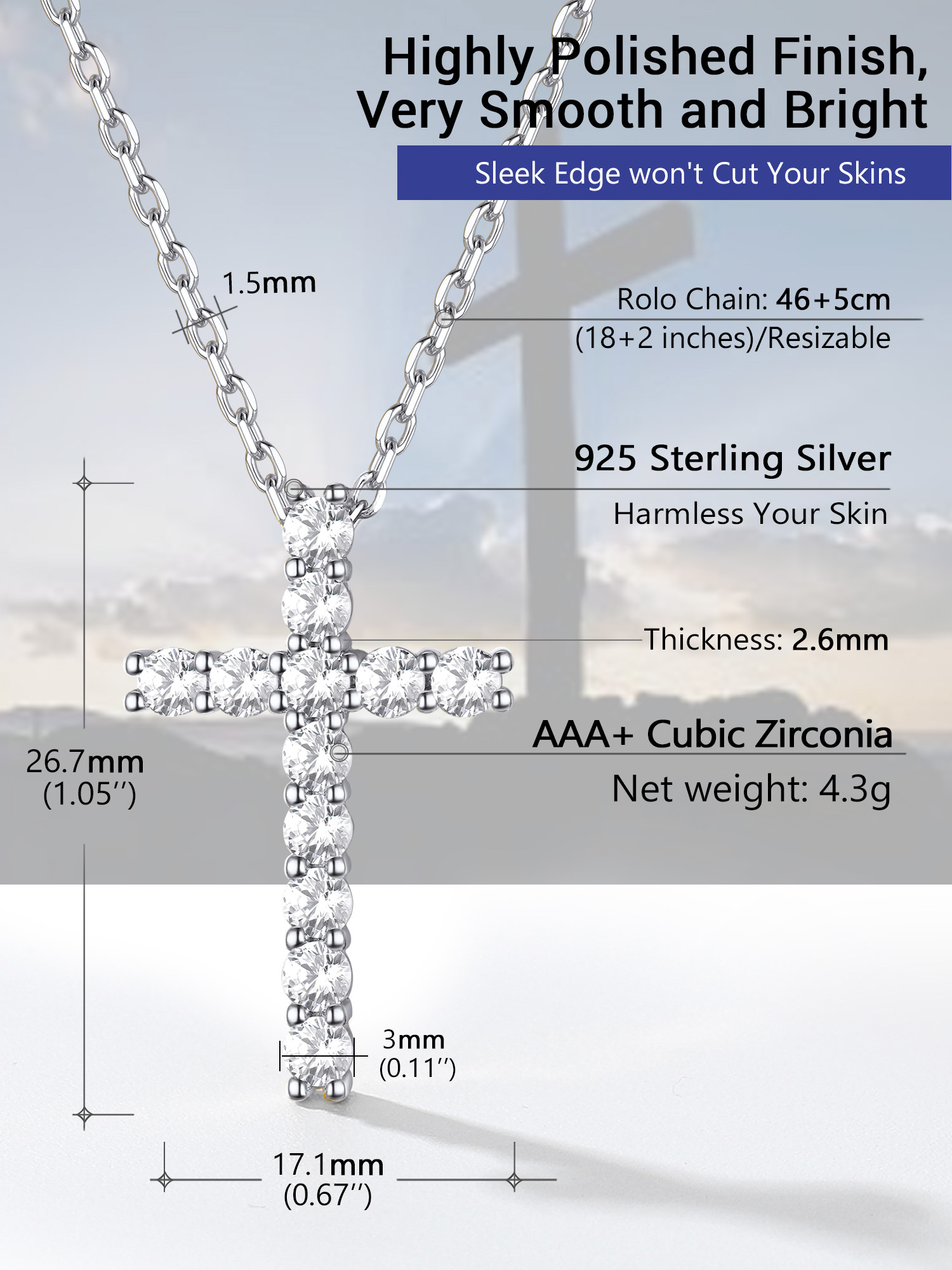 Maintaining Sterling Silver Cross Necklace - All of our jewelry are 925 sterling silver. Use our silver polishing cloth or any soft nonabrasive cloth to restore shine. For safe keeping, keep the jewelry stowed away in a cool, dry place.
