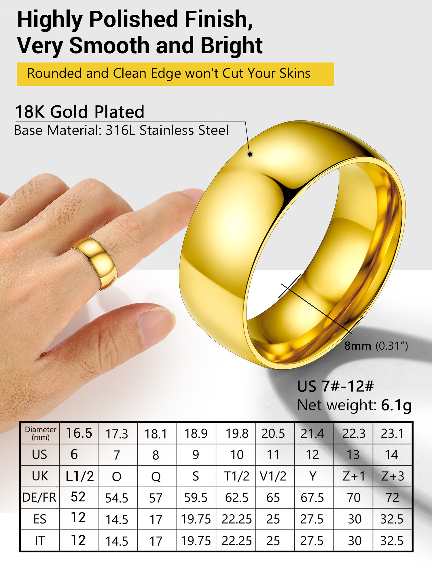 Stainless Steel Ring for Young Boy and Girls - Made of high Quality 316L Stainless Steel. Non tarnish 14K gold plated rings are wear-resistant and waterproof, ensuring long-lasting beauty. 99% of people do not need to worry about allergies and they do not turn your fingers green.