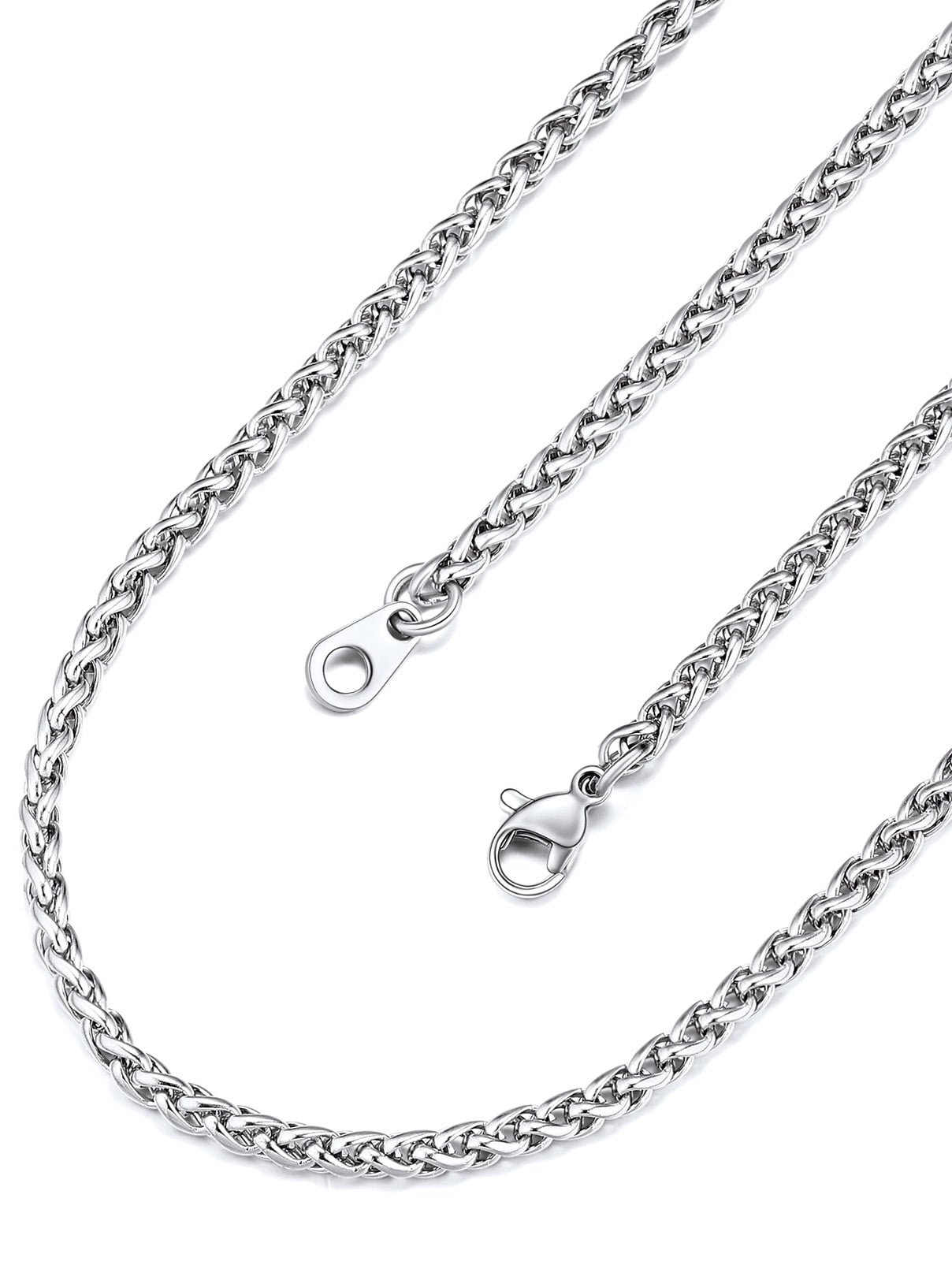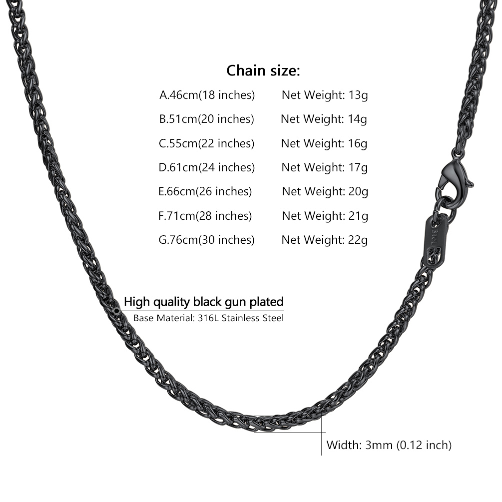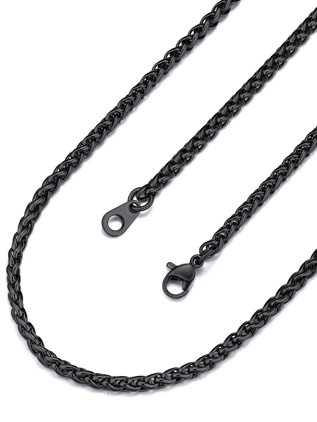 PROSTEEL Wheat Spiga Chain Necklace 3mm Stainless Steel Necklaces Hip Pop Black Chain for Men Boy Collection Gift Jewelry, 18 Inches