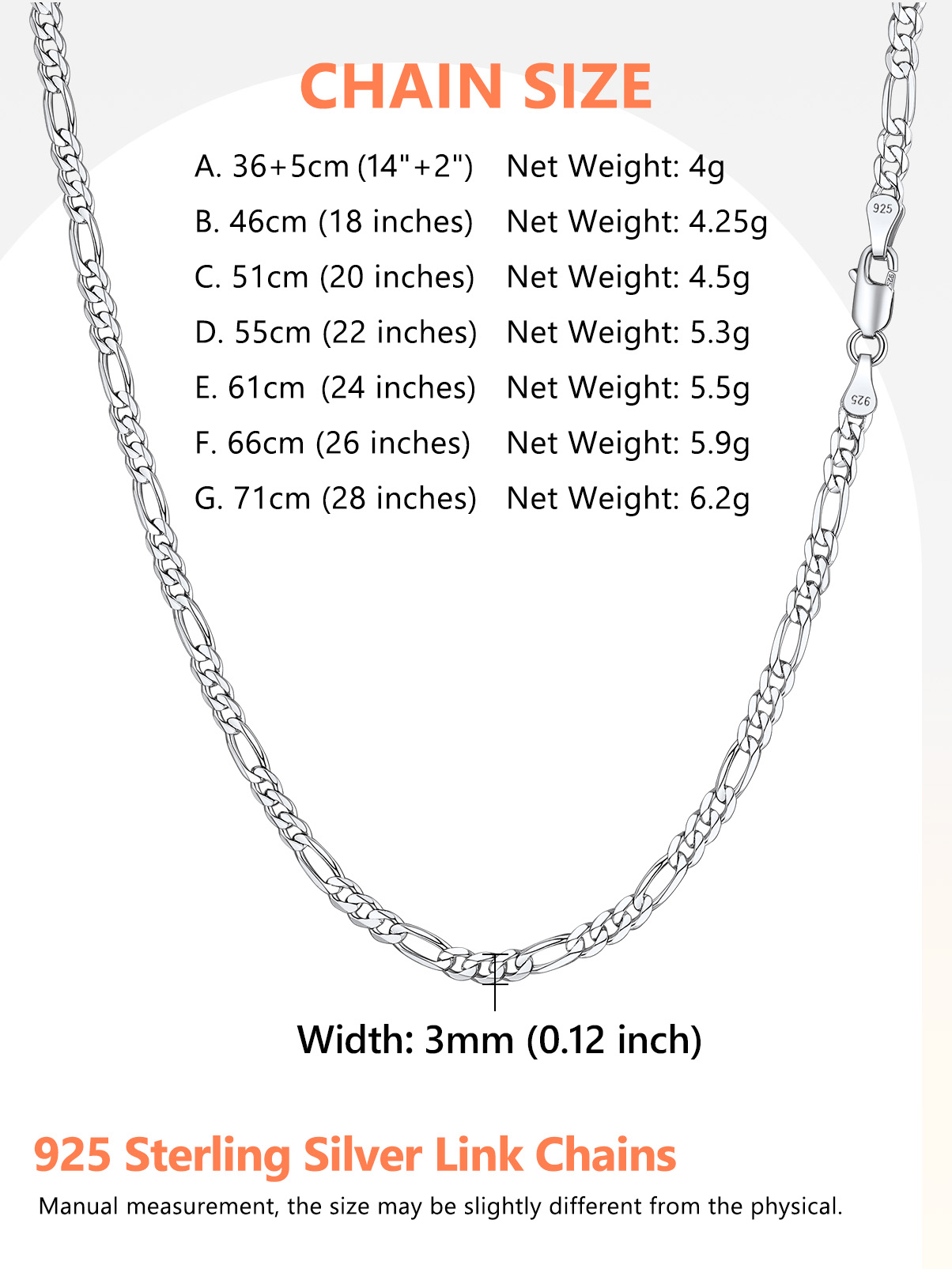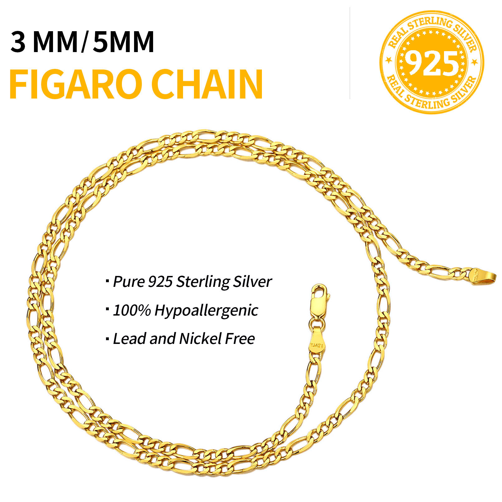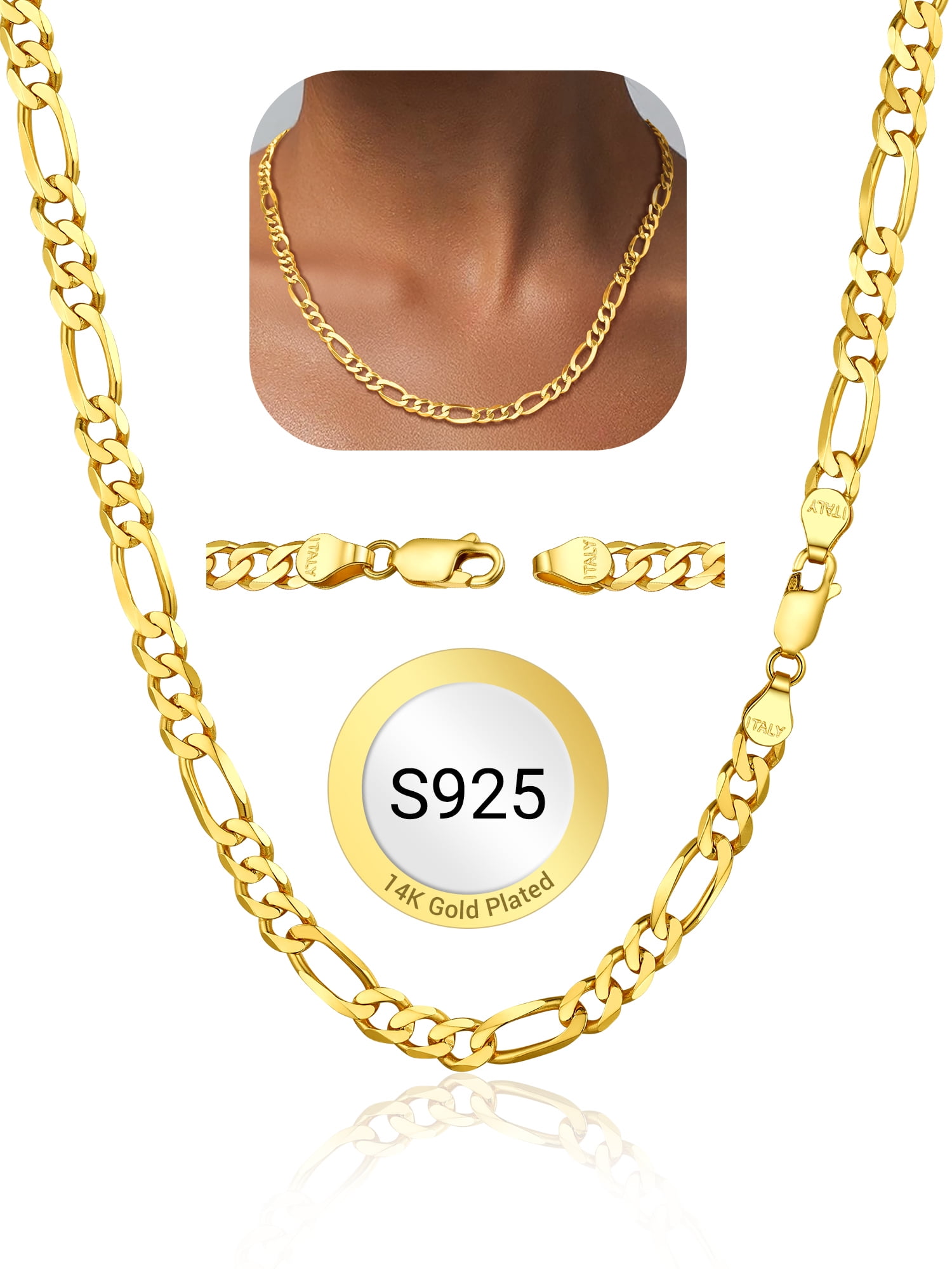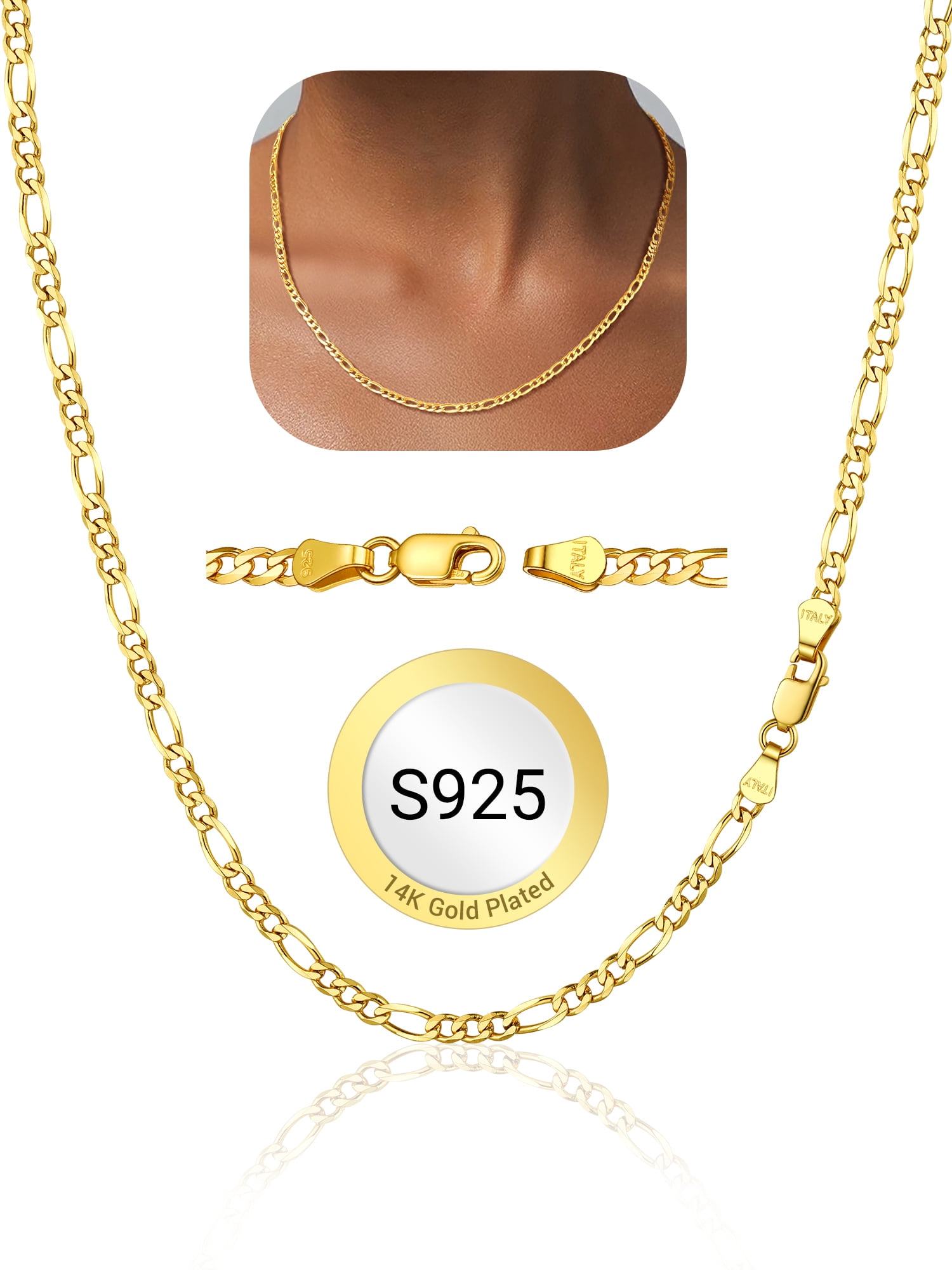 Sterling Silver Chain for Men Women - This 925 sterling silver figaro chain meets Italian craftsmanship. Strong, durable, comfortable and meant to endure daily wear. Minimalist and Stylish Chain Necklace, Wear it Alone, Pair it with Your Pendant, Also Layers Well with Your other Flashier Jewelry.