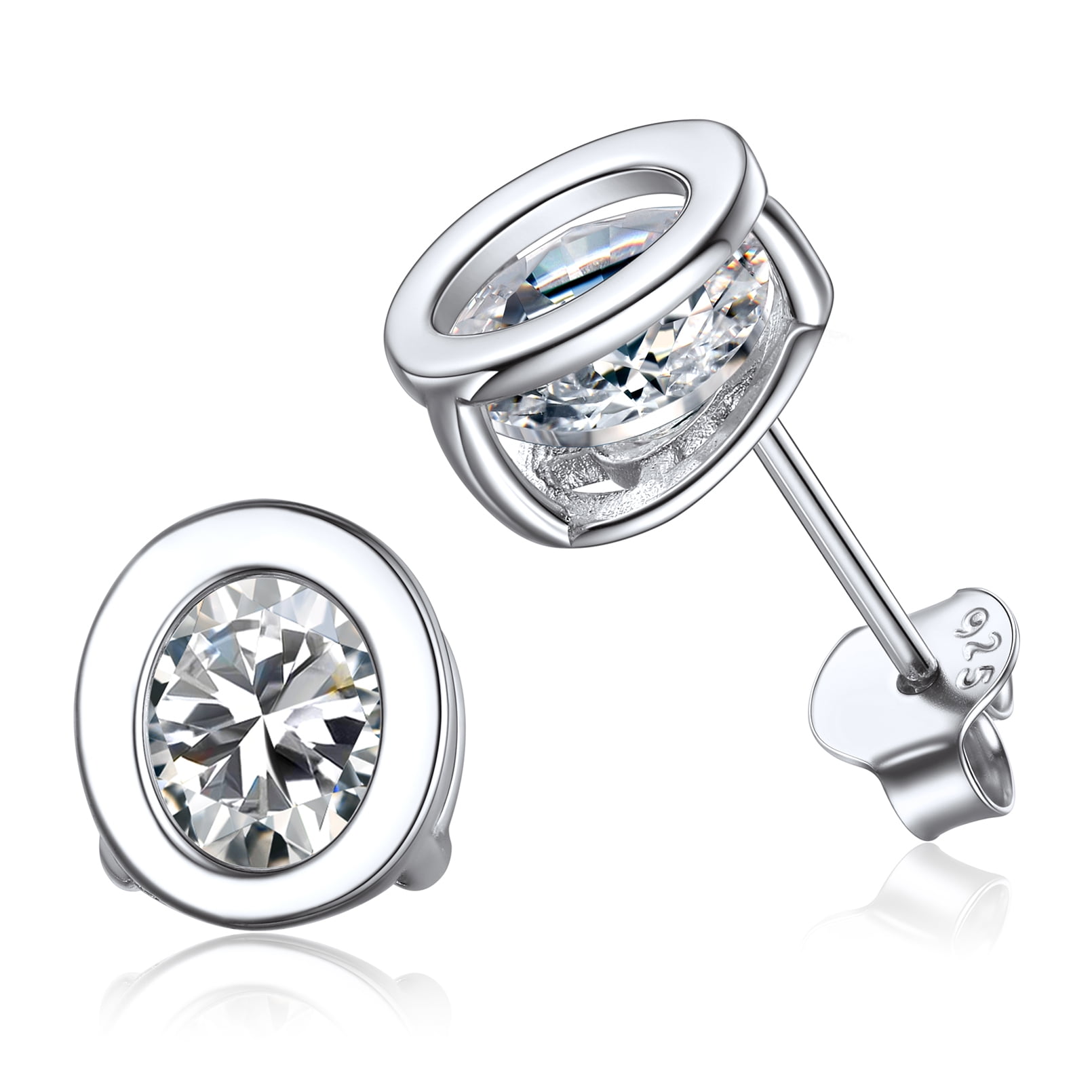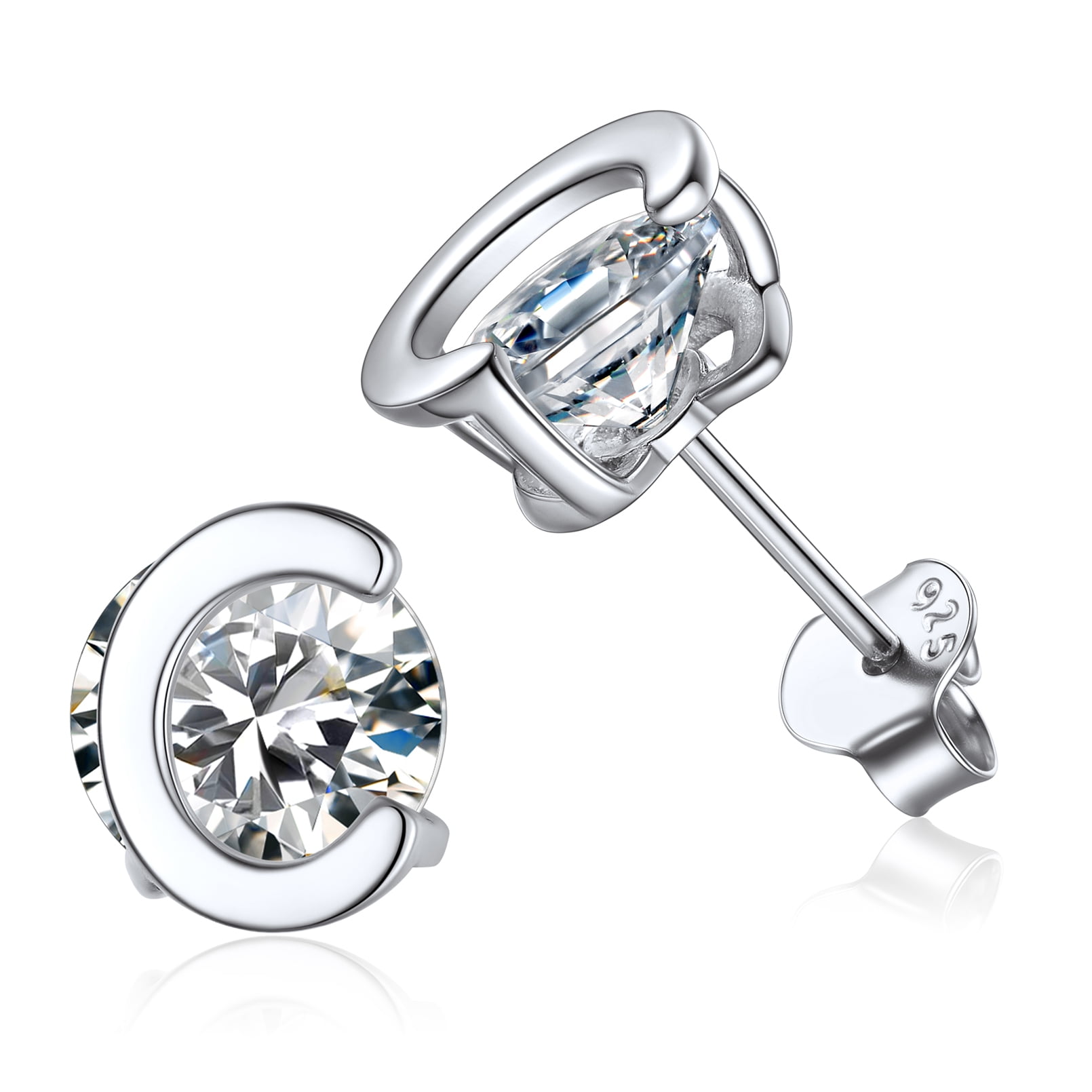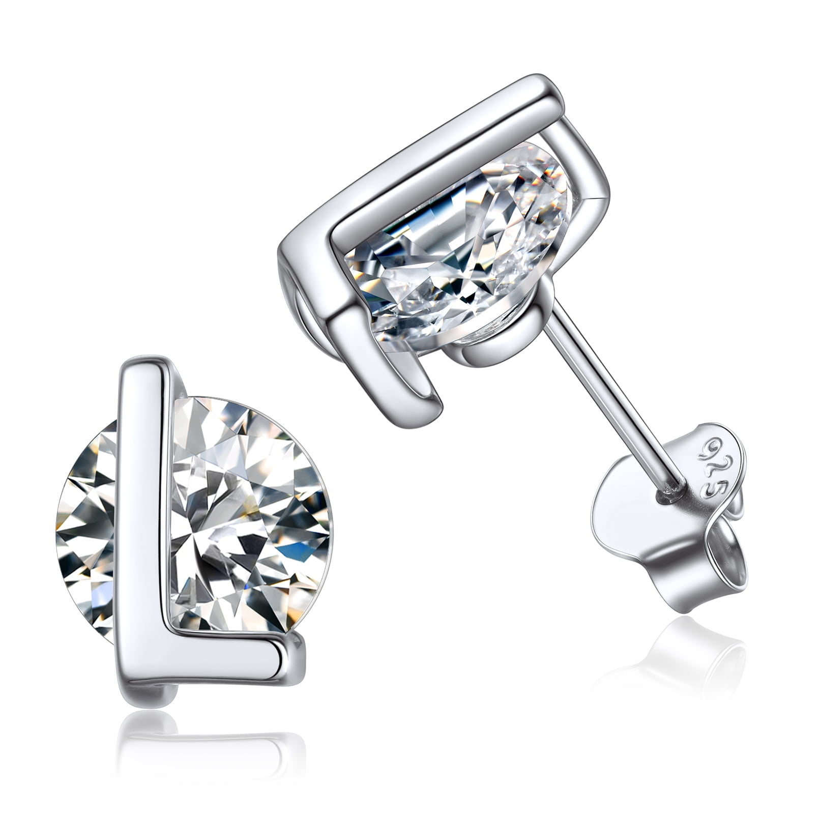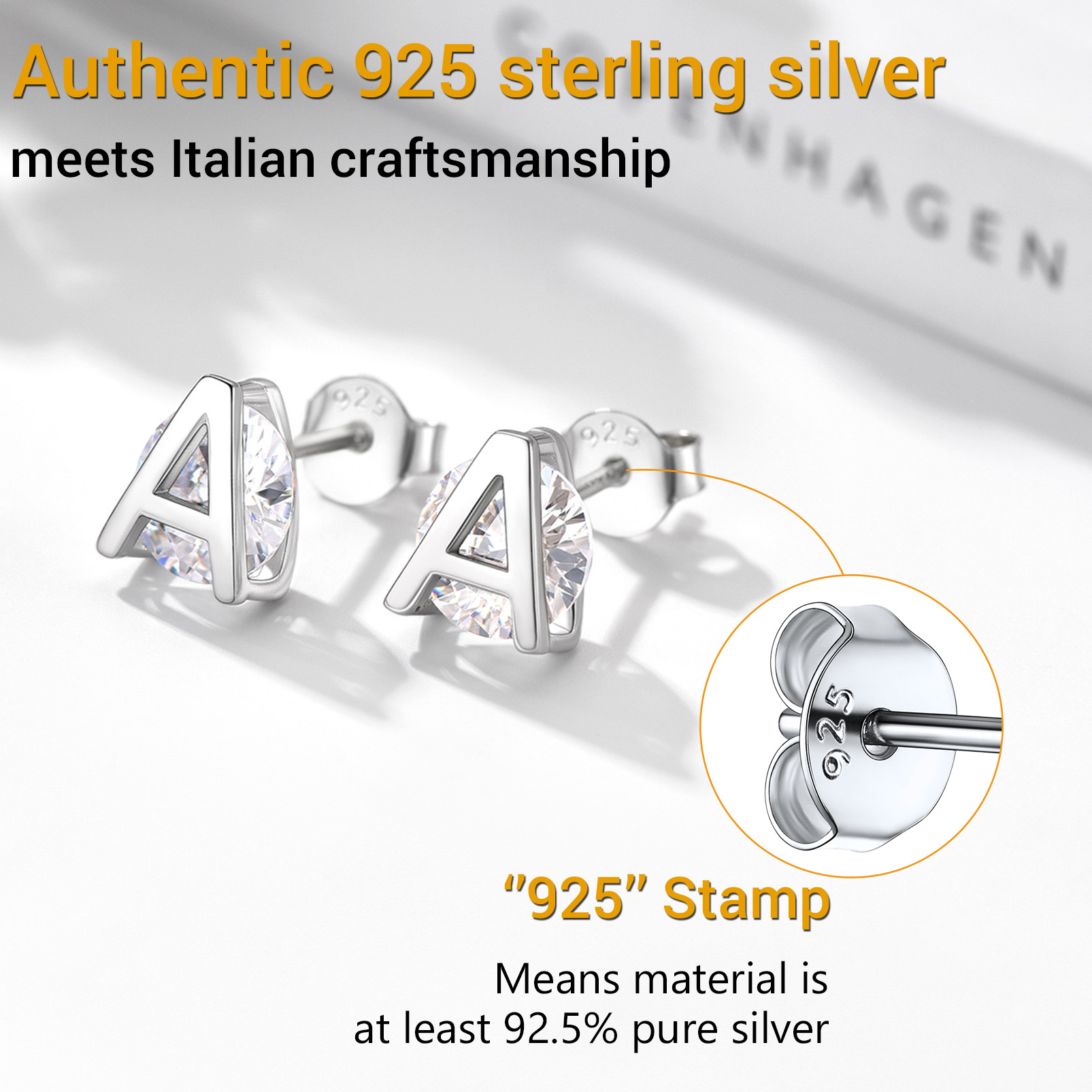 925 Sterling Silver Stud Earrings - Made of pure silver with S925 stamp and AAA+ cubic zirconia, nickel-free, lead-free and cadmium-free, perfect choice for sensitive ears. Hypoallergenic and comfortable.